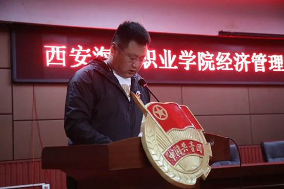 范鹏宣读贺信,他对新一届团总支、学生分会给予厚望,希望他们继续发扬学院优良作风,不断向上,总结经验,更加坚定信念;放眼未来,更将信心百倍。以饱满的激情,昂扬的精神,积极面对接下来的工作,为经济管理学院添砖添瓦。