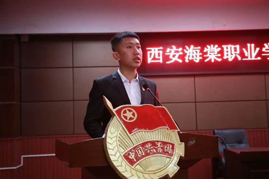 新当选学生干部代表梁坤发言,他表示,将继承和发扬历届学长学姐的优良传统和工作作风,进一步展现我院团学干部积极向上的精神风貌,不忘初心,牢记使命,为青年学生做好服务,促进学院团学工作提升,为学院发展做出新的贡献。