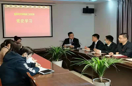 2021年4月9日下午,医技院教工党支部在行政楼2号会议室开展学党史主题教育,学习由朱介法书记主持,全体教工党员参加。
