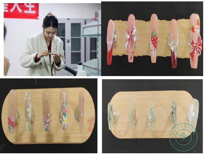 美甲比赛现场精彩纷呈,参赛选手各展其能。从简约时尚的纯色美甲到华丽复杂的彩绘美甲,每一款作品都展现了选手们的精湛技艺和独特审美。