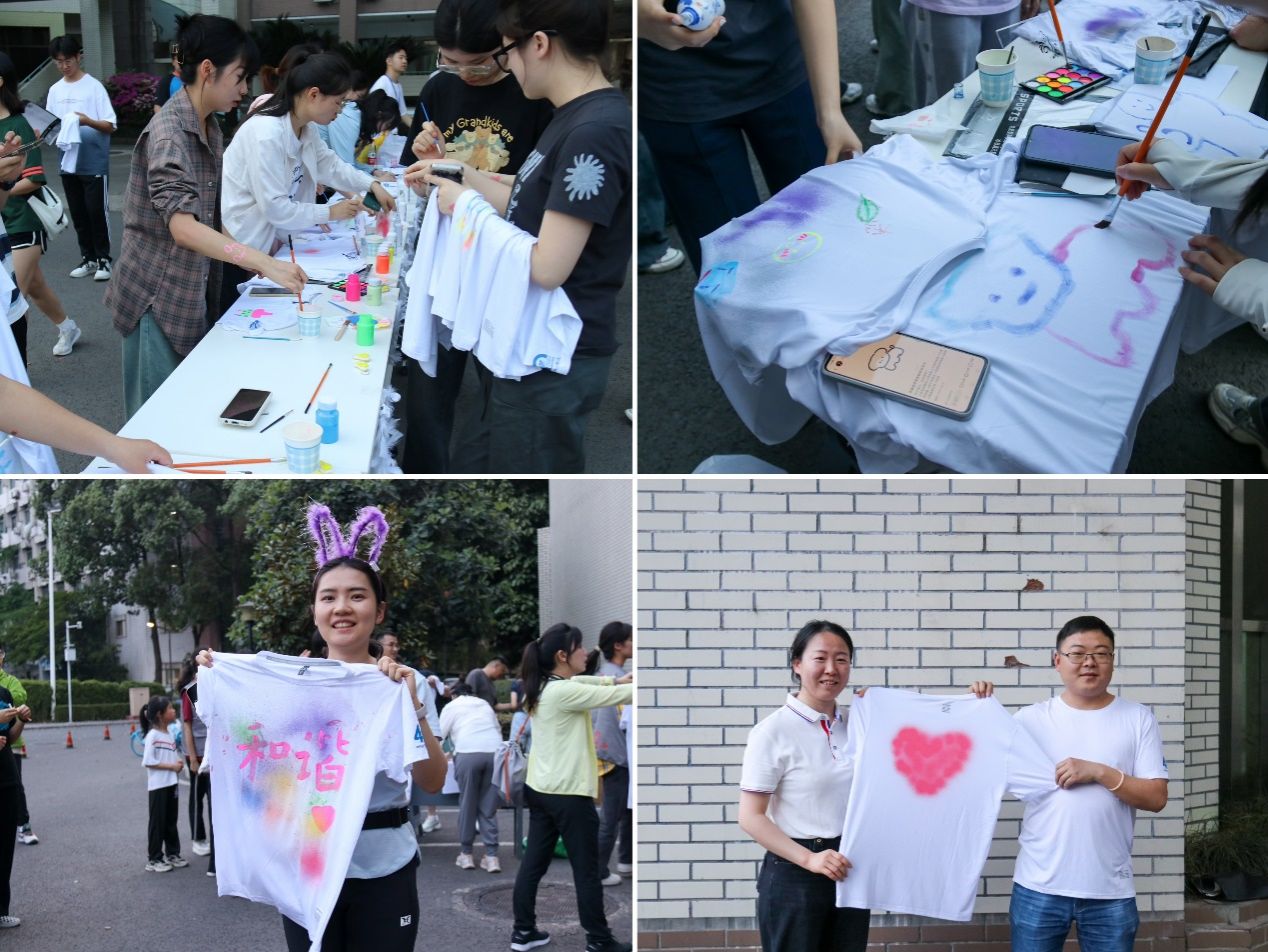 活动前夕,师生校友们领取了主题白色T恤、荧光颜料、喷绘工具及荧光棒等,即兴创作出各具特色的荧光夜跑服饰,让个人创意与集体活力碰撞出了缤纷色彩。