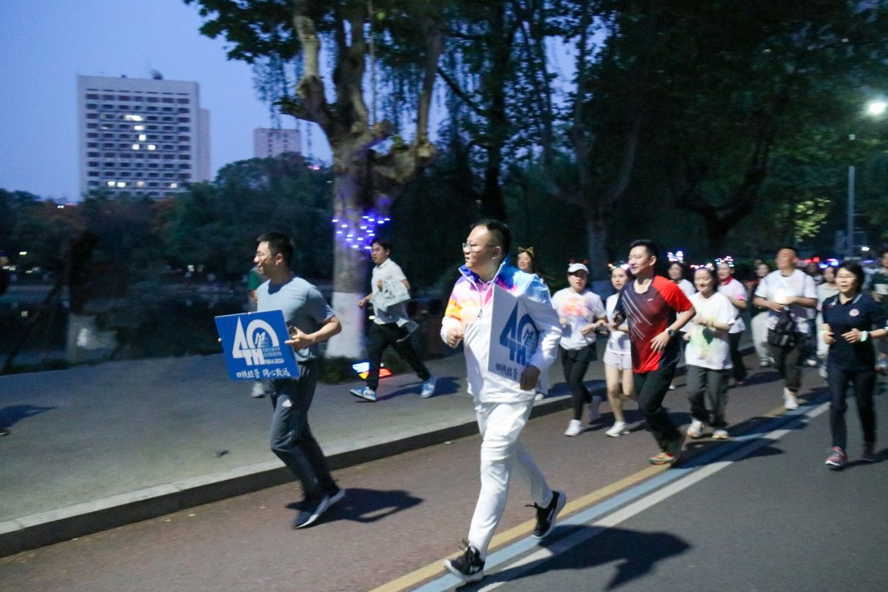 2024年4月13日周六晚19时,时值best365网页版登录官方网站建院四十周年之际,一场旨在增进院友与母校纽带、强化院友互动、提升团队协作精神的“我和院友‘e’起跑——荧光夜跑”活动在九里校区内热烈展开。学院党委书记郭强、院长韩科、党委副书记余小英、党委副书记、纪委书记晏理斌、团委书记贾佳、综合事务办公室副主任张笑芸出席了本次活动,学院100余名院友、师生参与其中。