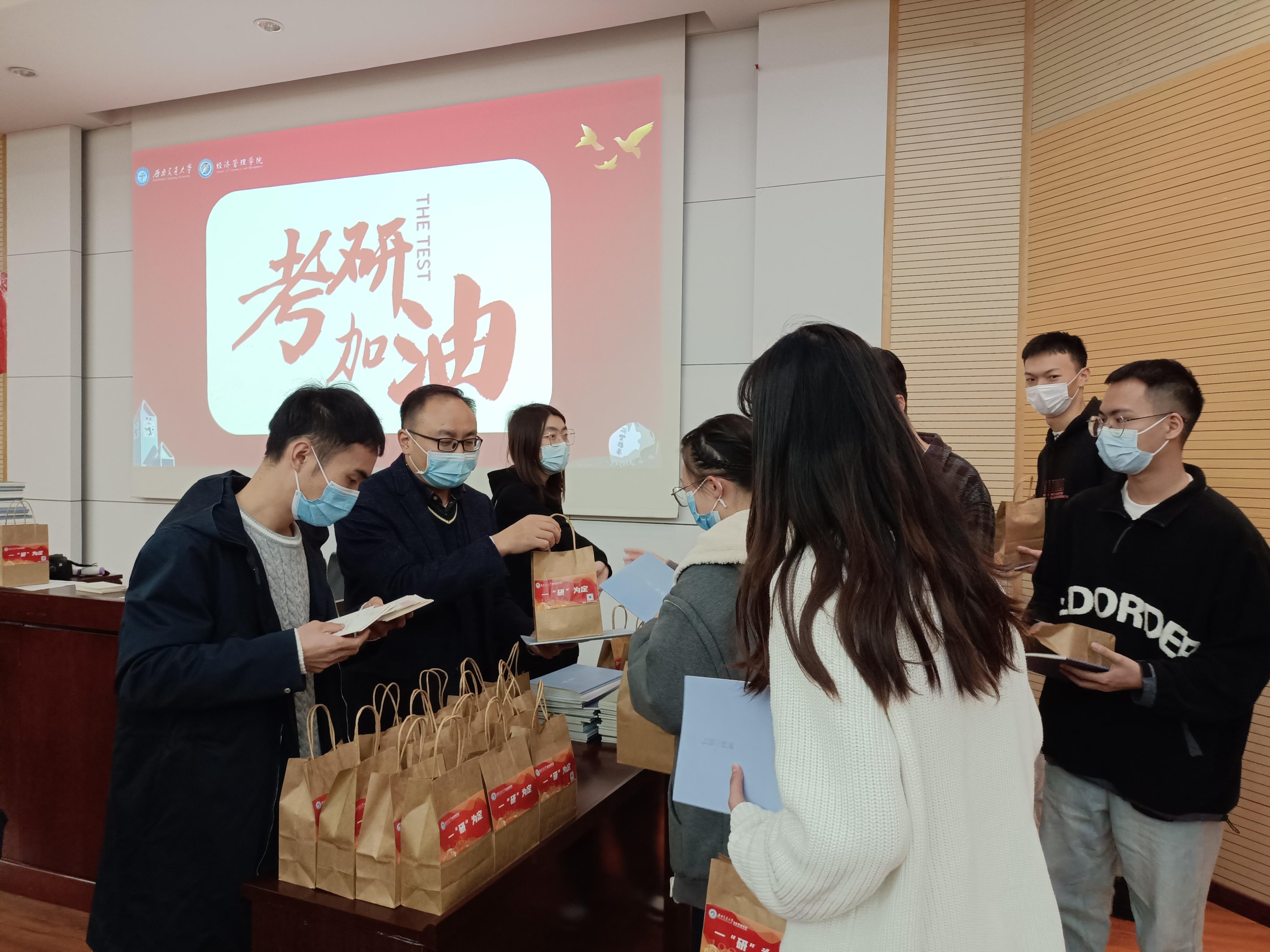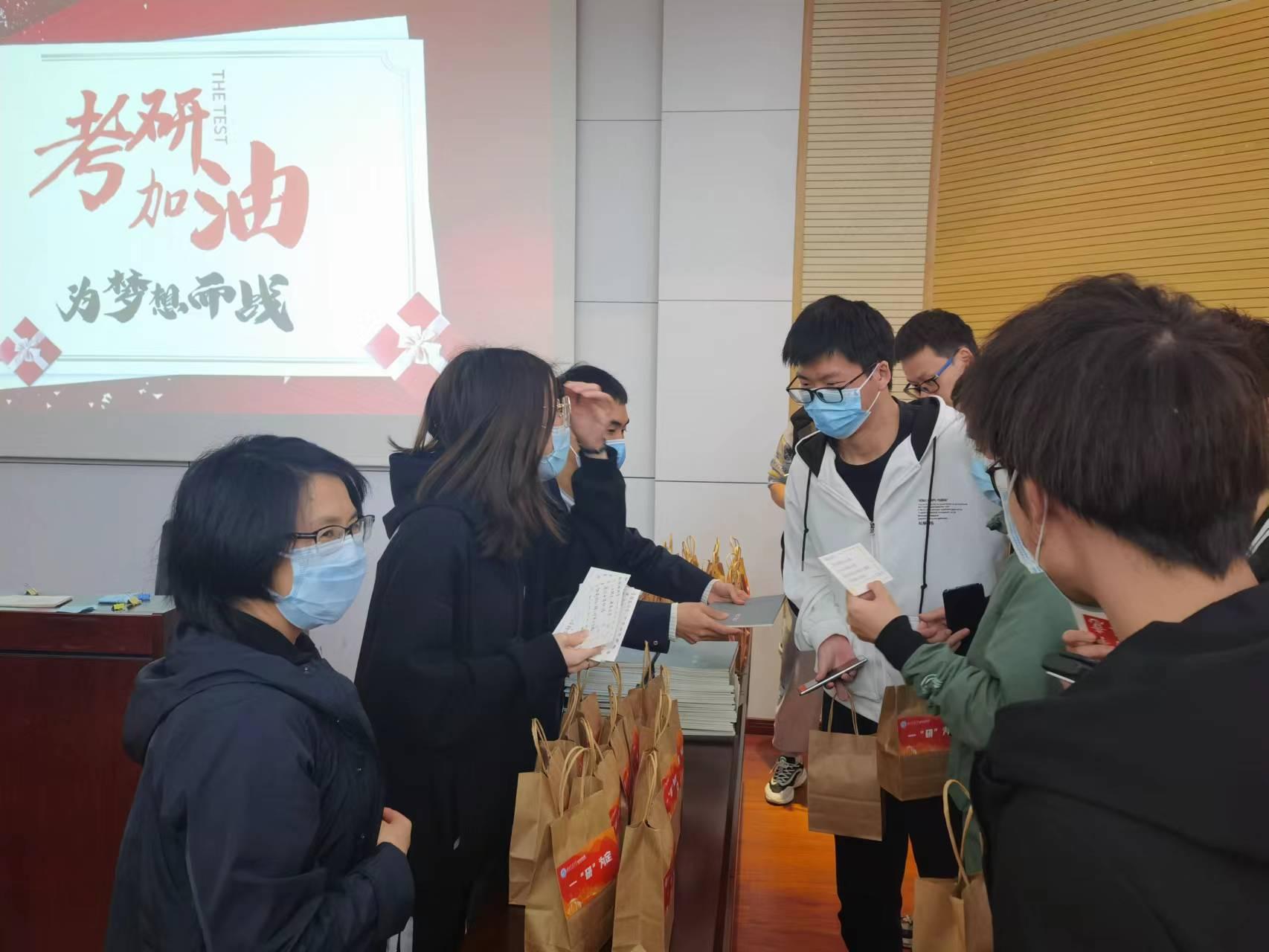 距离考研还有一个多月的时间,为帮助考研学子稳住心态、坚定信念,best365网页版登录官方网站组织开展了“逐梦经管,筑梦研途”考研慰问活动,辅导员老师们撰写了《致考研同学的一封信》,并在2022年11月21日下午为考研学子送上了精心准备的“一‘研’为定”大礼包和满载祝福的明信片,在这个冬天为大家送上了一份学院的温暖。