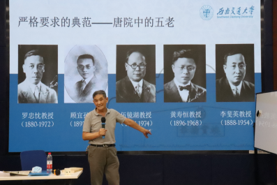 本次会议由梁锦唐主讲。他曾任西南交学经济管理学院党总支副书记、校招分处副处长等职多年来从事中国铁路教育史和校史研究,退休后长期为大学生、中学生讲诉交大校史,曾被评为四川省关心下一代委员会先进个人和全国关心下一代委员会先进个人。