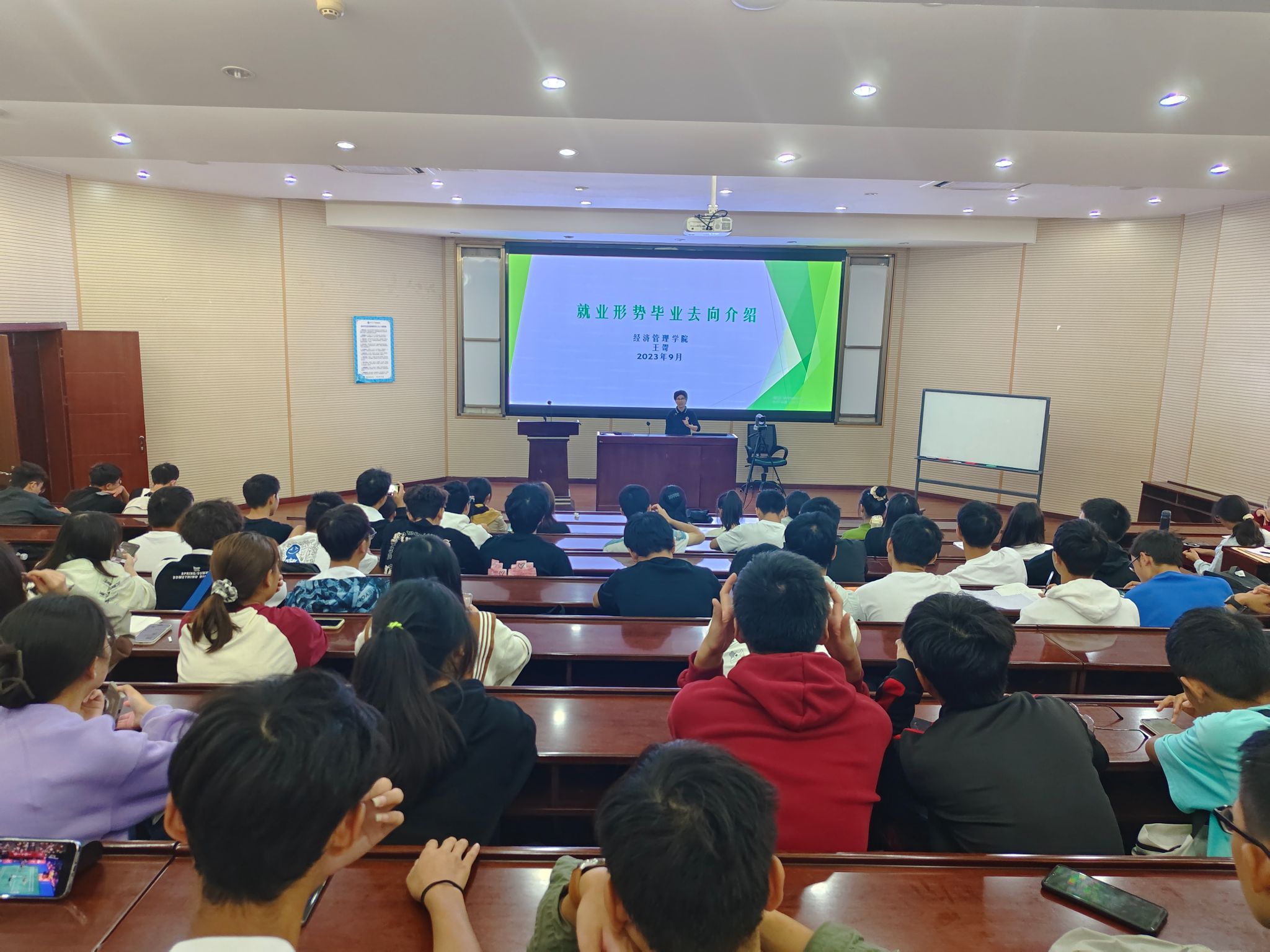 2023年9月27日上午,best365网页版登录官方网站本科2023级经济贸易类专业在零号楼0202室召开了生涯教育之就业形势与毕业去向介绍会。学生工作组副组长王哿老师主讲,2023级经济贸易类全体同学参加。此次介绍会旨在帮助同学们了解就业形势,尽快适应大学生,及早明确个人方向,做好个人大学规划,努力提升个人能力与素质。