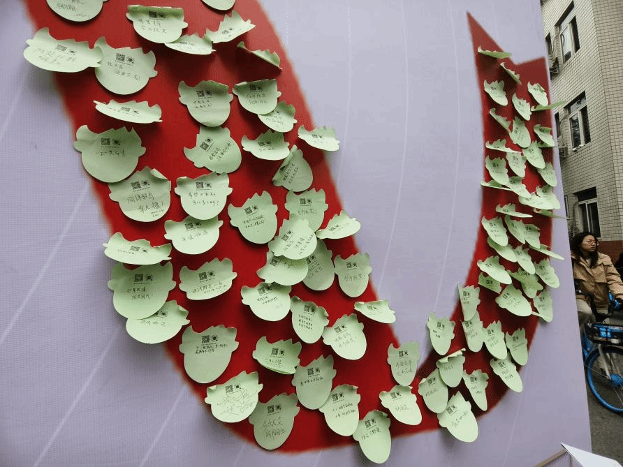 在合影留念区,参与者与专属立牌合影,为预防艾滋贡献一份力量,共抗艾滋、共享健康。在成果展区,同学们用心写着便利贴,寄托对艾滋病人的关爱,号召身边的同学从“怕艾滋”到“问艾滋”最后做到“懂艾滋、抗艾滋“,加强大学生对艾滋病的了解,宣传有关艾滋病的预防知识,减少对艾滋病患者的歧视。