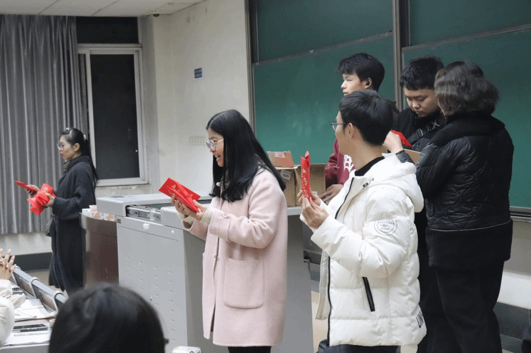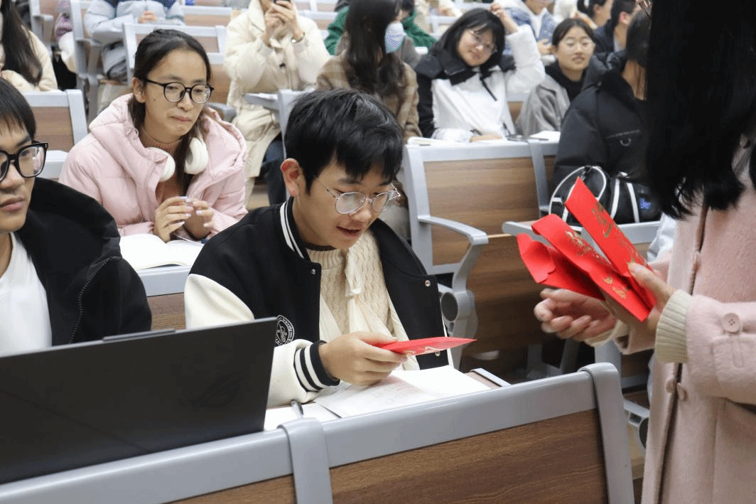 最后,老师们为每一位同学发放了一个温暖的红包。这是一份承载着祝福和温暖的礼物,希望同学们能够在考试中展现出最好的自己。收到礼物的同学们纷纷表示感激和惊喜,这份小小的礼物无疑给同学们的备考之路带来了巨大的动力和信心。这份礼物不仅是一份物质上的鼓励,更是一份精神上的支持。同学们将带着这份礼物和老师们的祝福,勇敢地迎接四级考试和期末考试的挑战。