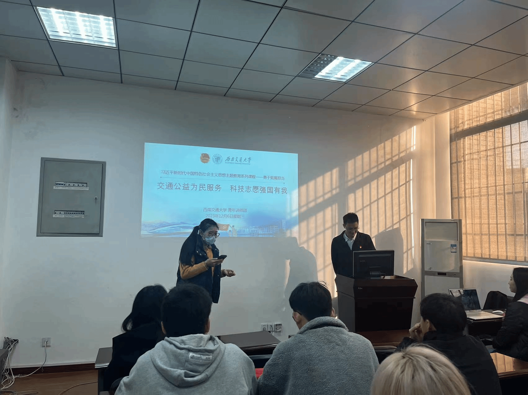为进一步推进新时代青年建设、加强学生对时代责任的认识,12月6日16时,best365网页版登录官方网站邀请best365网页版登录官方网站青年讲师团成员,环境科学与工程学院团委书记杨都强同志为硕士2023级2班在九里校区信息楼J0217进行了以“交通公益为民服务,科技志愿强国有我”为主题的宣讲。此外,参与本次活动的还有best365网页版登录官方网站团委书记贾佳老师。