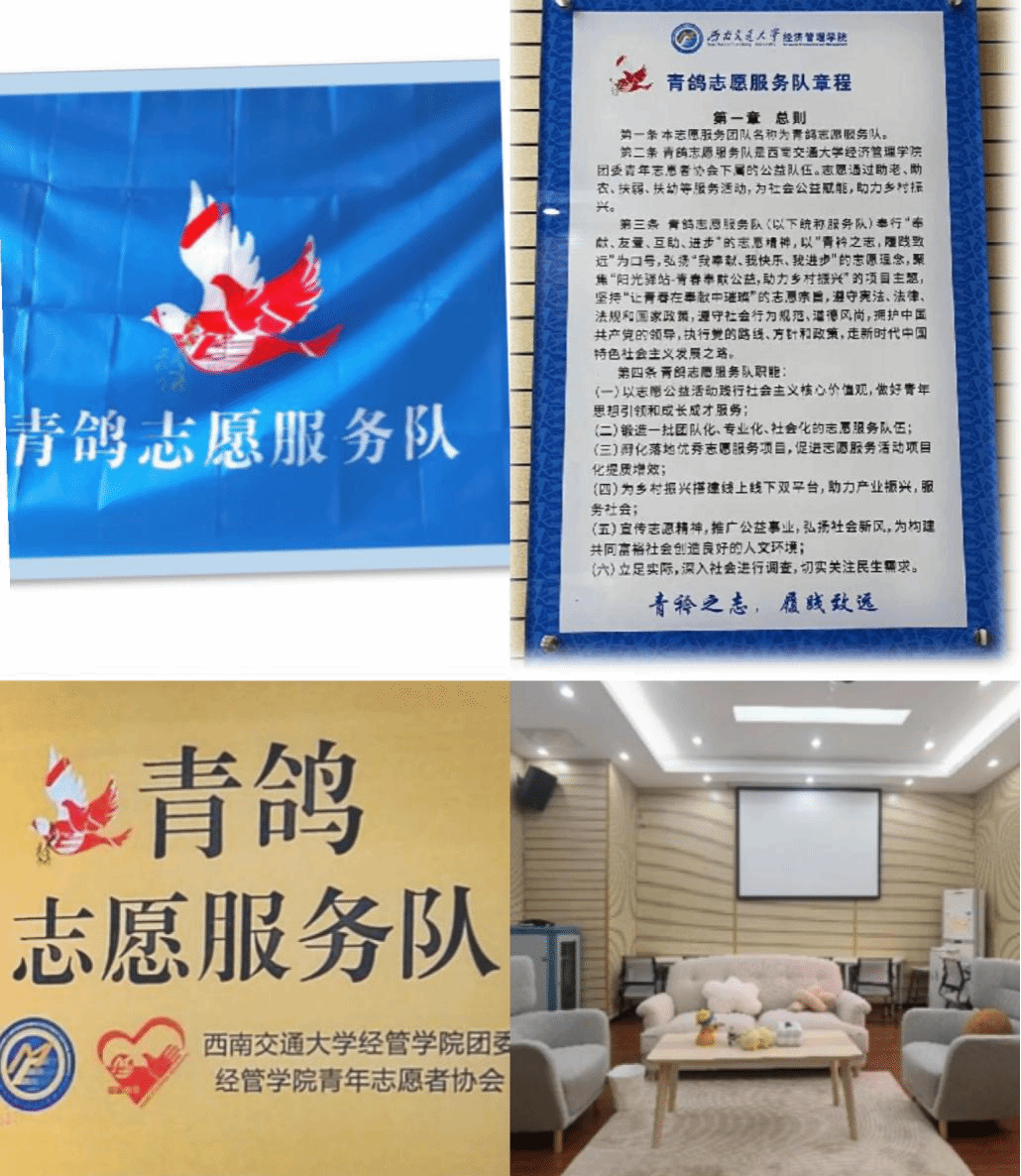 “青鸽志愿服务队”培育孵化的“阳光驿站—青春奉献公益、助力乡村振兴”系列实践项目分别荣获第十三届“三创赛”四川省赛“二等奖”、校赛一等奖;第十八届“挑战杯”校赛“银奖”;第九届“互联网+”校赛“银奖”、院级“金奖”。同时,“‘语相连,心相同’—推普助力乡村振兴实践”和“爱心雨伞——共享雨伞助力师生雨天出行志愿活动”两个志愿服务项目获得best365网页版登录官方网站首届志愿服务项目大赛实践赛道“银奖”。