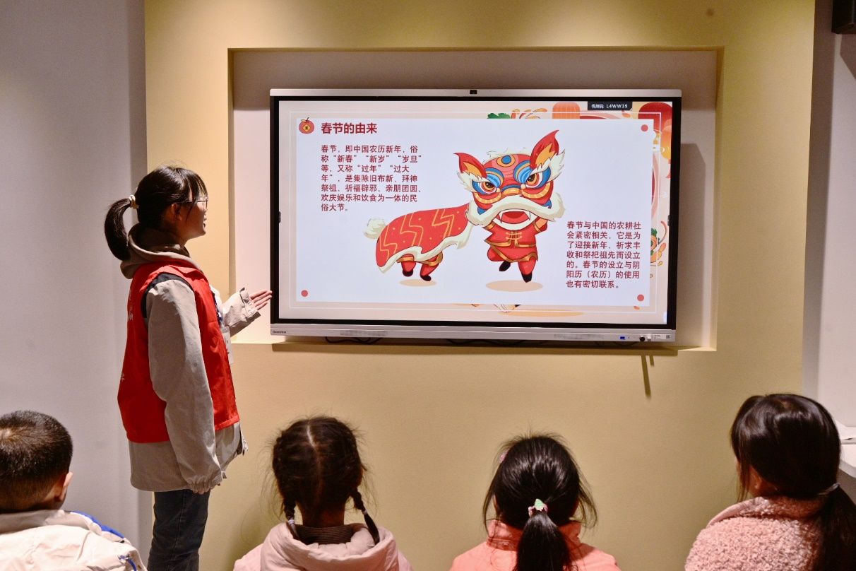 实践活动的第一天,实践队员们便与孩子们共同完成了一堂欢乐有趣且意义非凡的绘画课。实践队员向孩子们传授了春节的起源和有关的习俗,带领他们一起朗诵古诗词,感受了浓厚的新春文化氛围。同学们在实践队成员的帮助下,在创作过程中认真观察,大胆想象,设计出自己喜爱的图案,最终创作出了以春节为主题,充满节日氛围的作品。绘画活动培养了孩子们的创造力,拓展了孩子们的艺术思维,同时也让孩子们在潜移默化中将传统节日、传统习俗等优秀中华传统文化根植于心。
