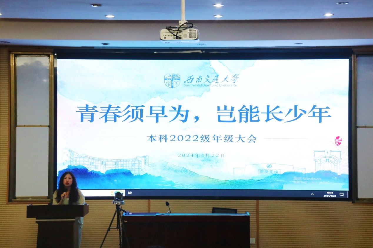 为教育引导本科2022级学生树立职业生涯规划意识,了解当前社会形势,明确未来发展方向,2024年4月22日、23日19:30,best365网页版登录官方网站本科2022级在九里校区J0202教室举行了年级大会。本次会议由本科2022级辅导员薄慧、贺小轩主持,2022级全体学生参加。