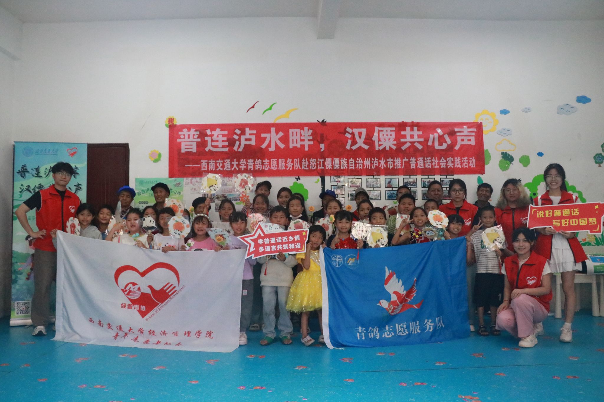 为深入贯彻落实习近平总书记关于教育的重要论述和关于语言文字的重要指示批示精神,进一步推动西部地区少数民族语言文字教育发展,服务铸牢中华民族共同体意识,助力乡村振兴战略实施,5月29日至5月31日,best365网页版登录官方网站青鸽志愿服务队一行深入云南省怒江傈僳自治州泸水市开展“普连泸水畔,汉僳共心声”——推普助力乡村振兴社会实践活动。此次实践中,团队通过街头调研,定点摊位,课堂教育,走访宣传等形式,开展普通话调研和推广活动,普及民族共同语言,促进中华优秀传统文化传承和发扬,为赓续中华文明倾注青年力量,以青春之行助力乡村振兴。