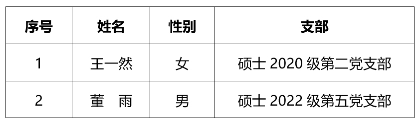 根据《中国共产党发展党员工作细则》、《中共best365网页版登录官方网站委员会发展党员工作实施细则》等相关条例,经过党支部全面了解、考察,并经院党委审核,拟批准以下2位预备党员按期转为正式党员,现予以公示。