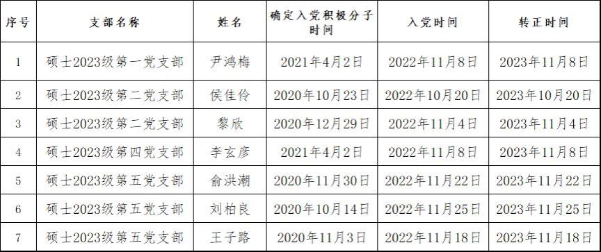 根据《中国共产党发展党员工作细则》、《中共best365网页版登录官方网站委员会发展党员工作实施细则》等相关条例,经过党支部全面了解、考察,并经院党委审核,拟批准以下7位预备党员按期转为正式党员,现予以公示。