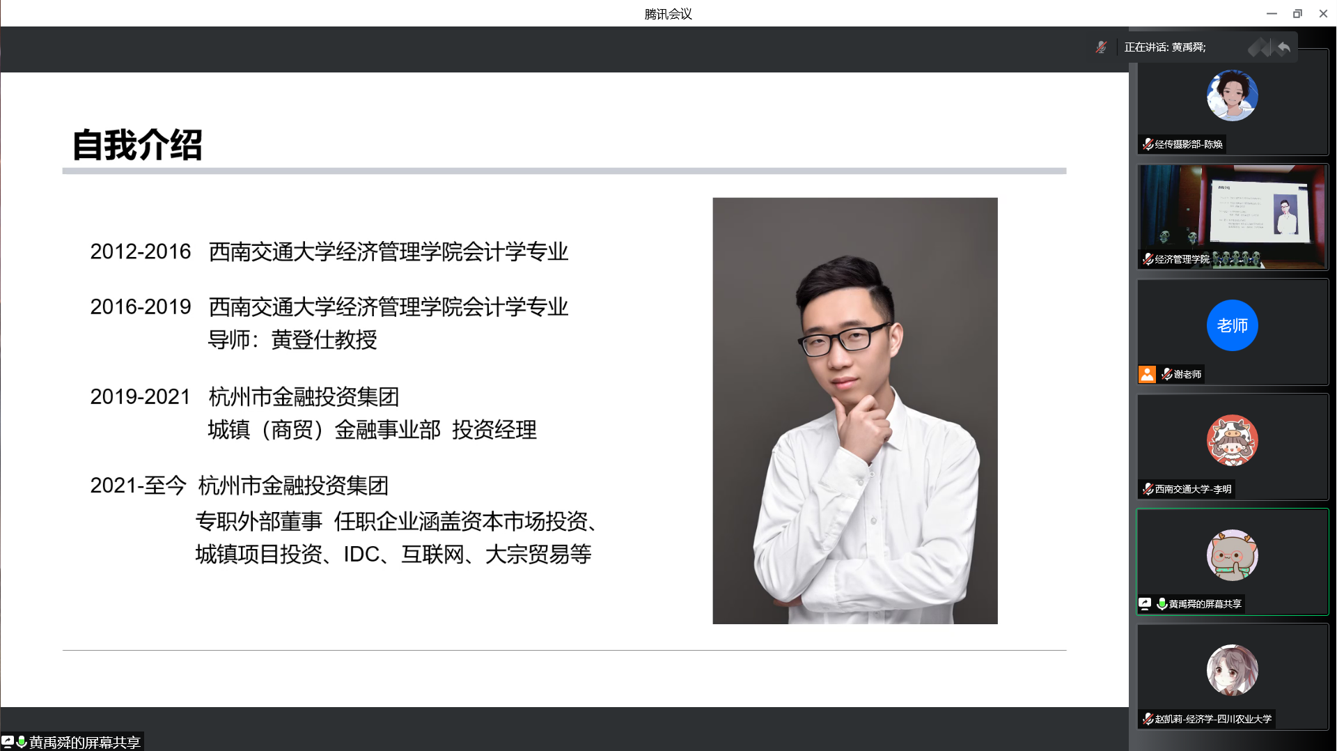 在best365网页版登录官方网站副院长周嘉南教授的主持下,蒋教授为大家带来了“财智与投资”的学术讲座,带大家领略了金融的实用性。同学们与蒋教授进行了热烈的讨论。学院研究生教育中心主任马锋副教授为大家带来了学院学科、学术型硕博生培养情况的介绍。他从学科建设、学术型硕士培养、博士研究生培养等角度,全方位为大家展示了best365网页版登录官方网站的研究生培养工作。