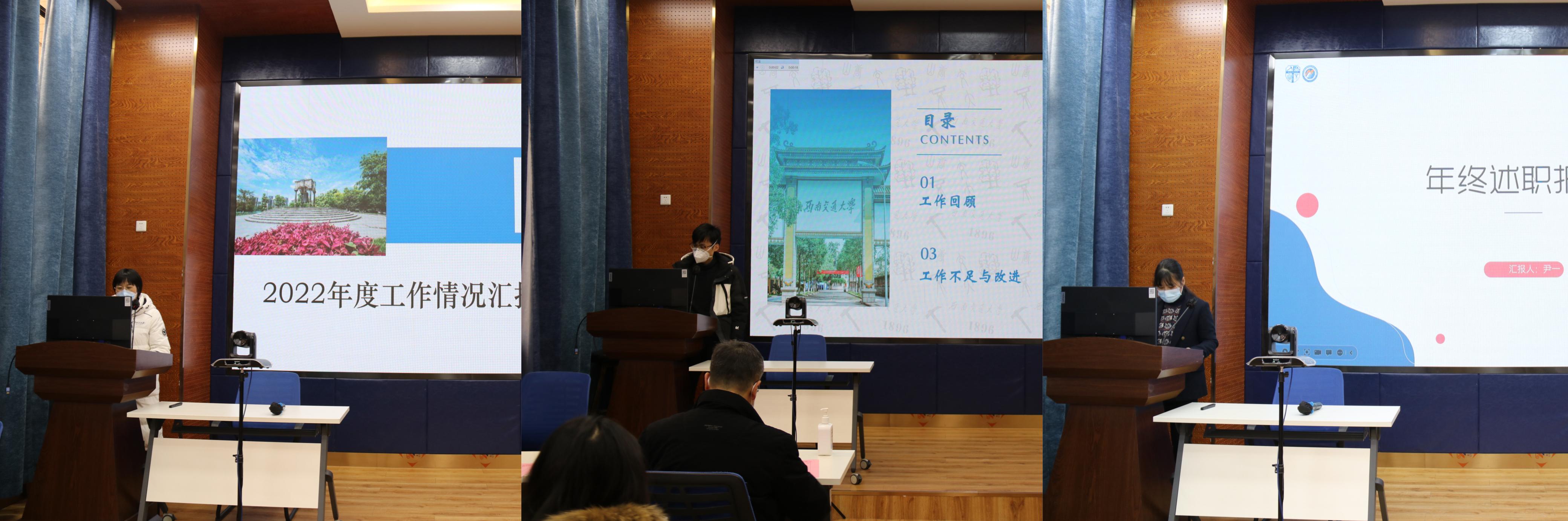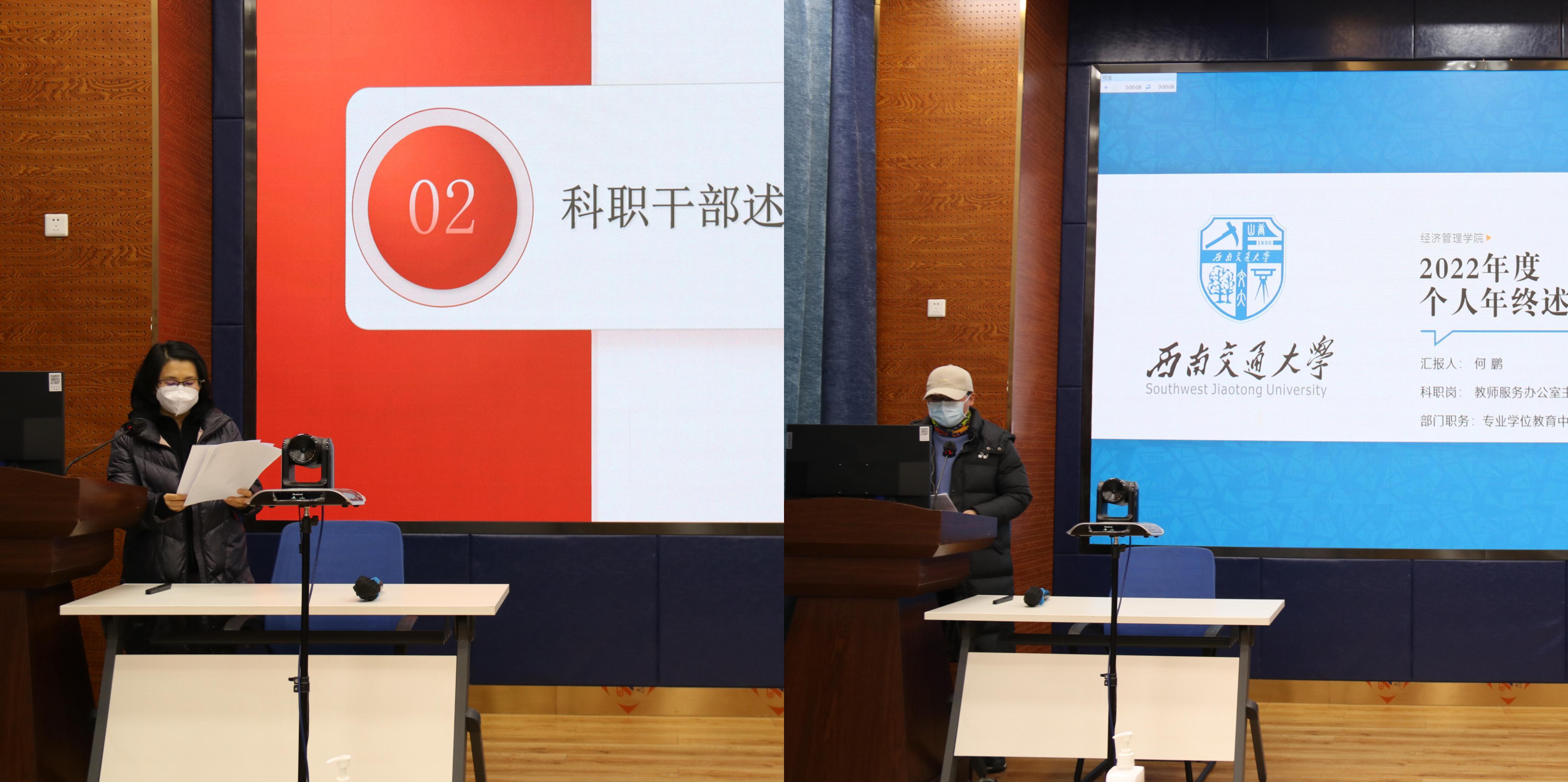 2022年12月27日下午2点经济管理学院在九里校区0218会议室召开内设机构负责人2022年度工作述职评议考核会议学院党政领导班子成员、各部门(中心、系)正副负责人、专业负责人科职干部及教职工代表参加了述职评议考核会议,会议由学院党委书记王斌主持