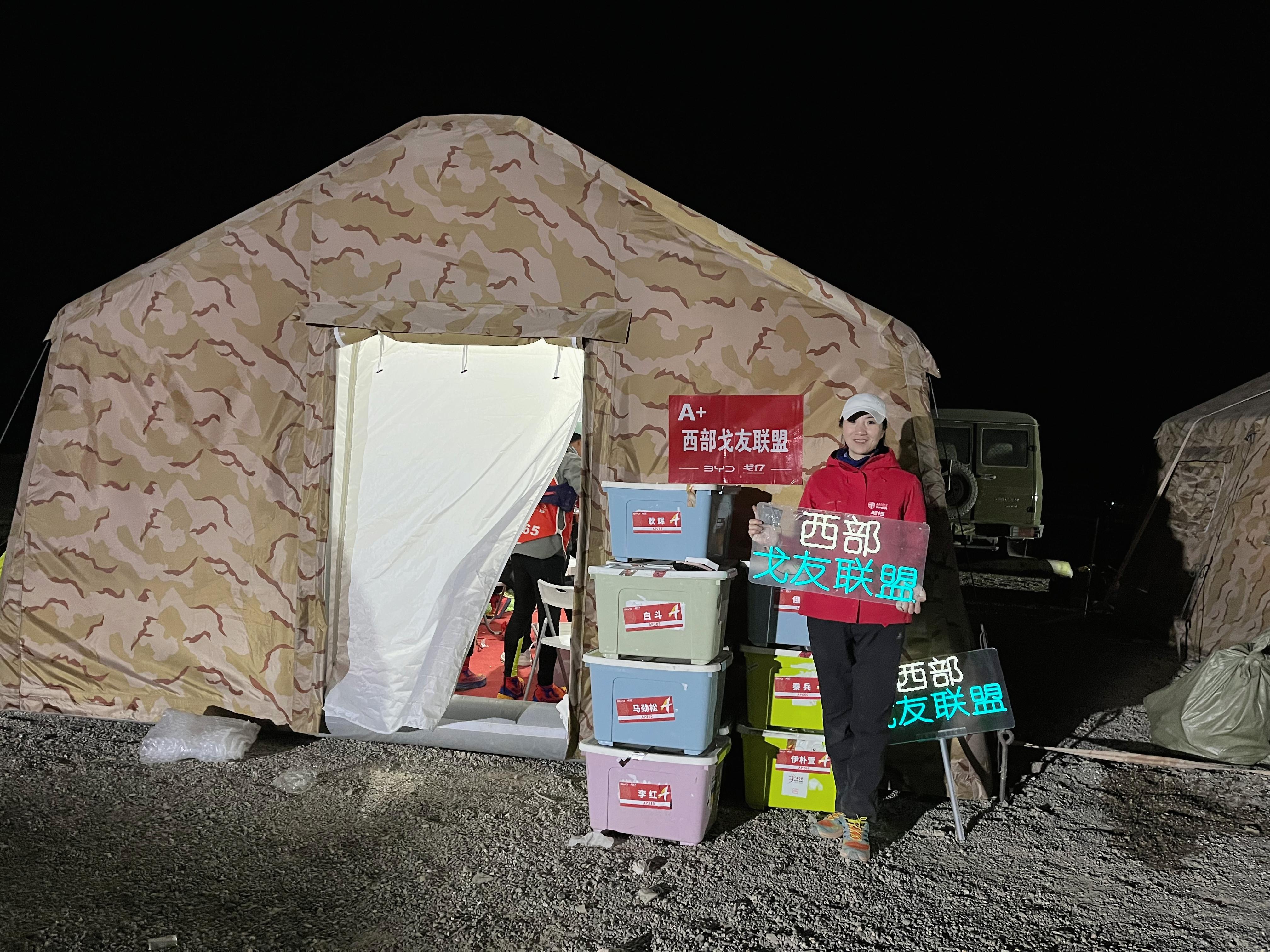 陈银娇在打卡点彻夜守候西部戈友联盟俱乐部的A+ 队员