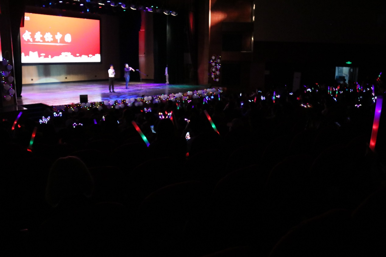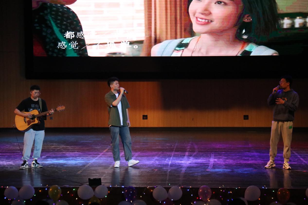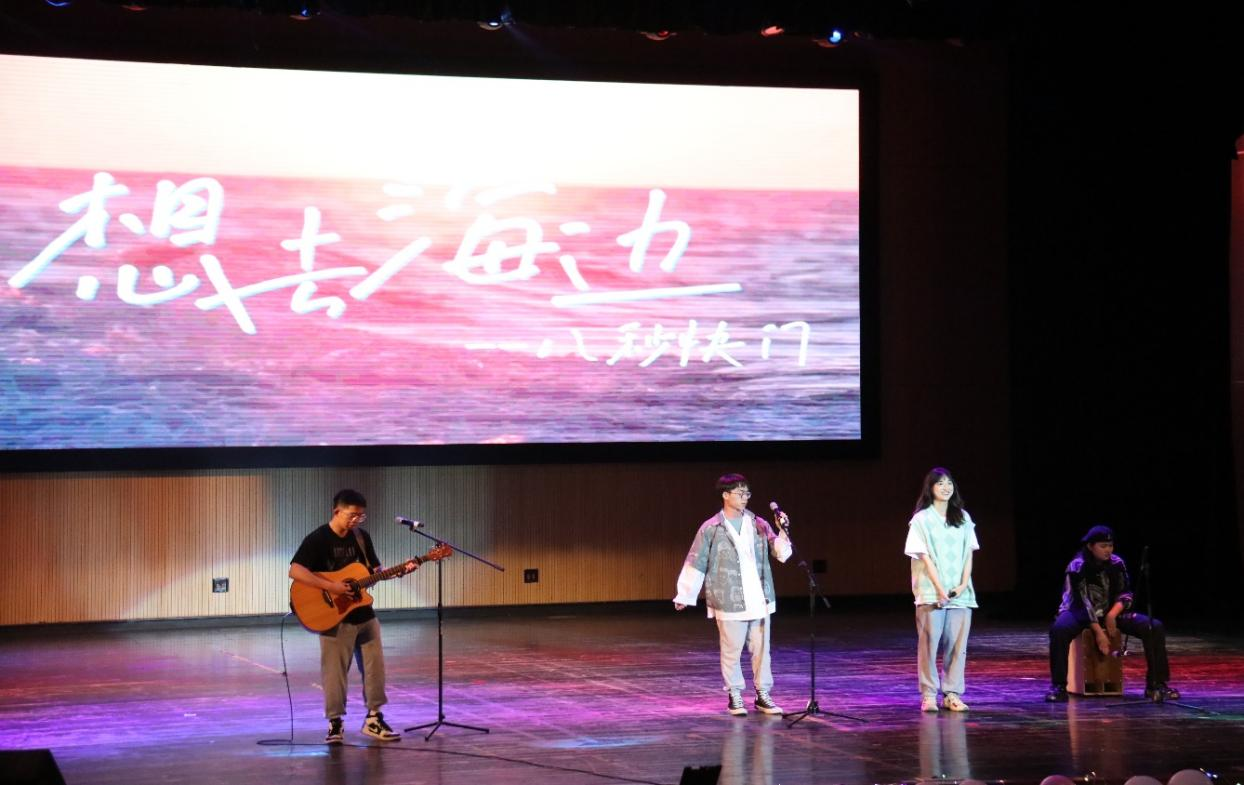 晚会由我校扬音音乐社带来的歌曲《我爱你中国》与《想去海边》作为开场节目,歌曲一经演唱,便将全场气氛活跃起来。