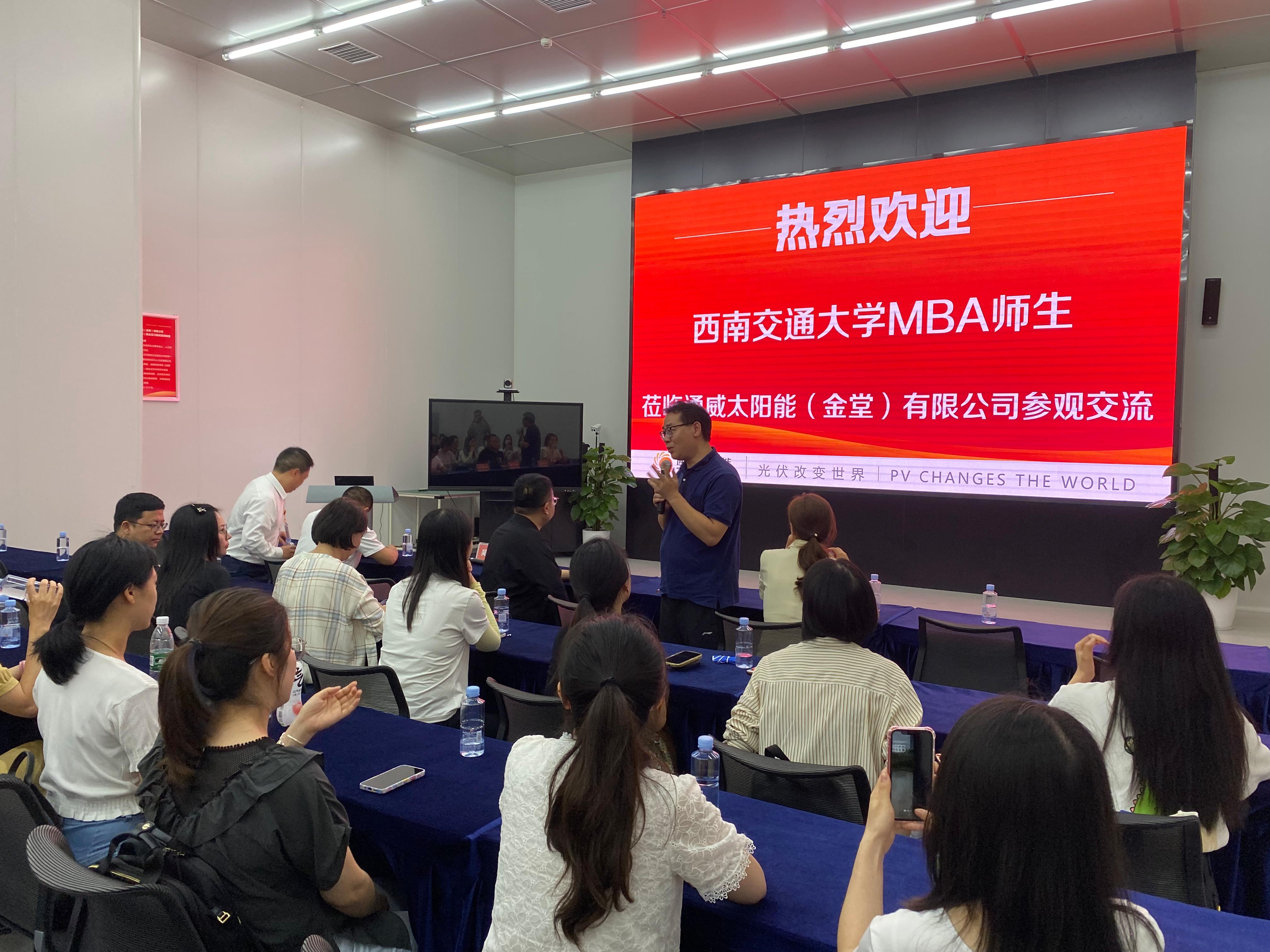 在通威太阳能(金堂)有限公司相关领导同事的热情接待下,师生一行对通威集团的发展历程、新能源产业的发展布局、智能制造的建设成果以及产学研相结合的生产管理方法等进行了深入切实的现场学习。
