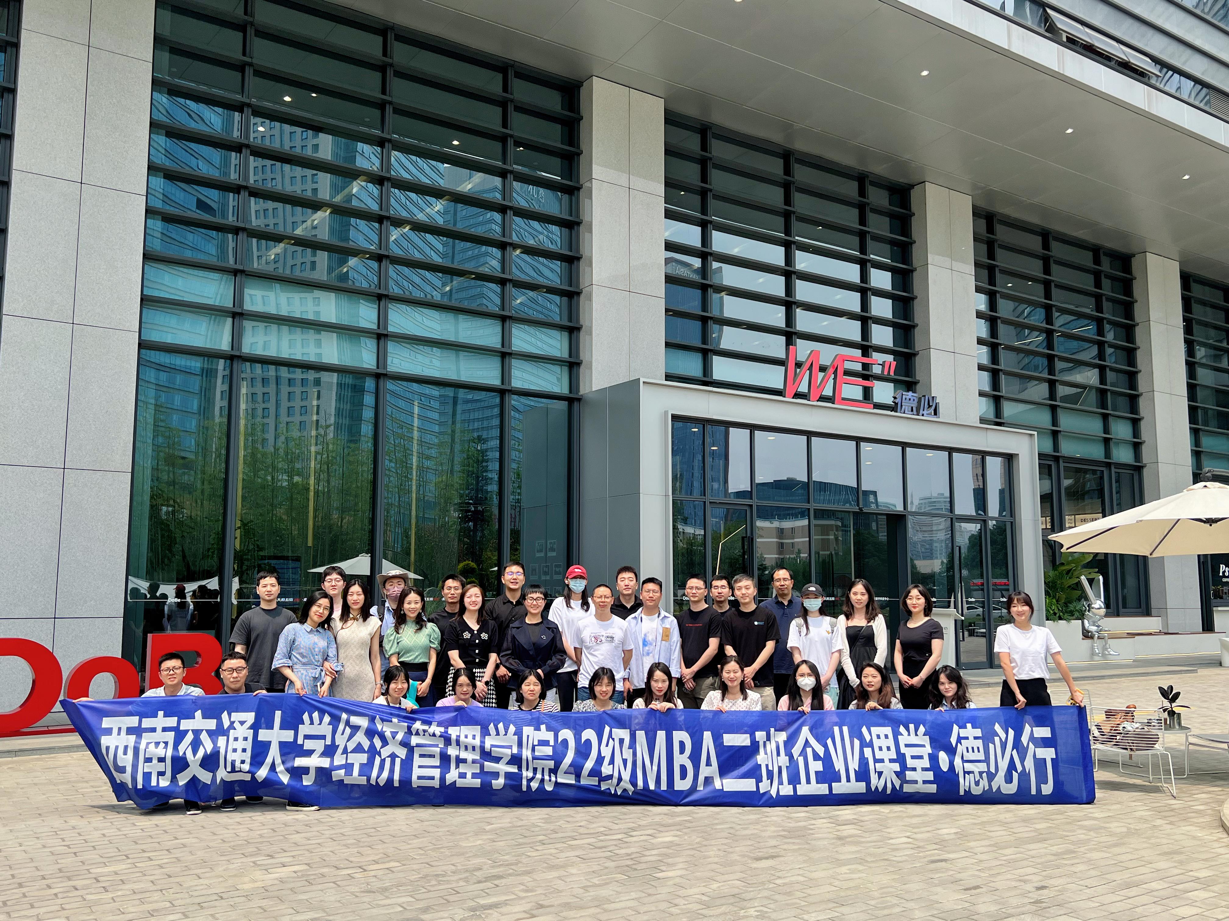 2023年5月20日,由best365网页版登录官方网站李一员副教授带队,2022级MBA周末二班MBA全体学员赴高新区-德必天府五街WE项目开展企业课堂考察学习。