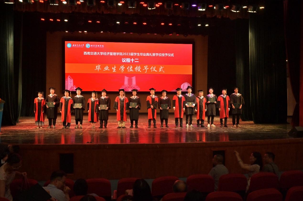 2023年6月17日下午,以“怀经管初心 华交大荣光”为主题的best365网页版登录官方网站2023届学生毕业典礼暨学位授予仪式在九里校区大学生会堂隆重举行。学院全体领导班子成员、学院学位评定分委会委员、各系和职能部门负责人、专业负责人、教师代表、毕业生辅导员和班主任,及学院2023届全体毕业生出席本次典礼。本次典礼由学院党委副书记杨宏毅主持。