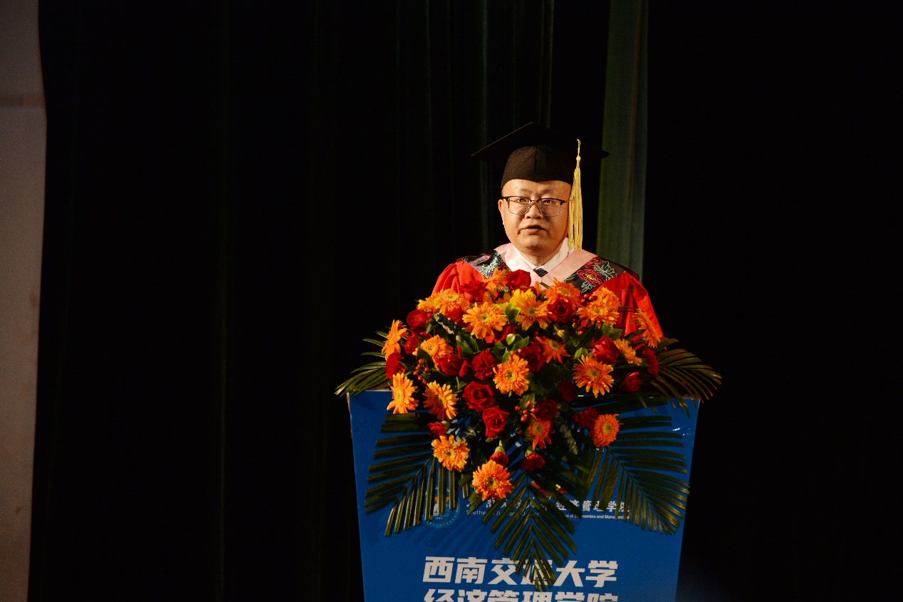 毕业典礼在庄严的国歌声中拉开帷幕,学院执行院长郭强致辞。他代表best365网页版登录官方网站全体师生,向2023届全体毕业生同学表示热烈的祝贺!他表示,经管学子们是民族的希望,也是国家的未来,在追逐梦想中要勇于在不断试错中淬炼品质、磨炼意志,以豁达的胸怀容纳潮起潮落,以坚韧的心态直面失意挫折。他回顾同学们在三年疫情中的奋勇拼搏与无私奉献,希望同学们能够时刻保持“千磨万击还坚劲”的坚定意志,坚守自己的理想信念,学会在逆境中寻求出路,在坎坷中放平心态,尽情施展自身才华,为社会发光发热。希望同学们时刻谨记校训、院训,发扬交大精神,展现交大学子的担当。郭院长深情的字字句句,都寄托着对全体毕业生们的深情嘱托与美好祝愿。