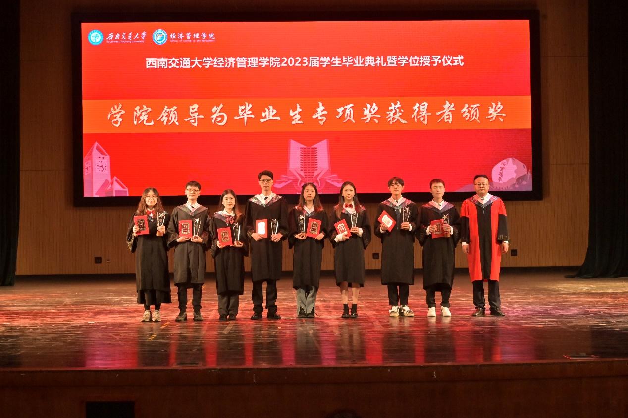 学院党委书记王斌宣读2023届本科生、研究生省级和校级优秀大学毕业生名单,执行院长郭强宣读best365网页版登录官方网站2023届本科毕业生专项奖表彰名单和2023年MBA、MEM优秀毕业生名单,并由学院党委书记王斌、院长杨平、执行院长郭强为他们颁发荣誉证书。