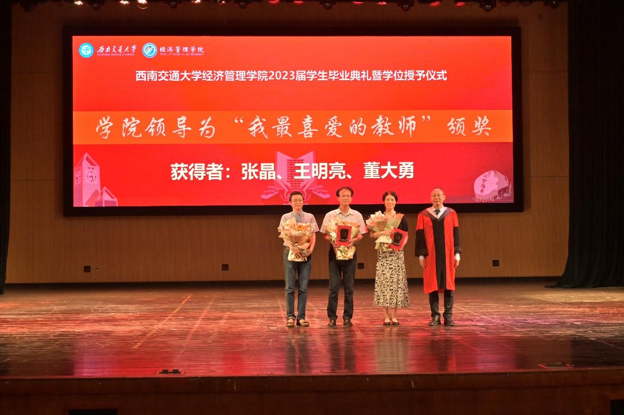 学院副院长李良宣读best365官网2023届本科毕业生评选的“我最喜爱的教师”名单,获得者是:张晶老师、王明亮老师、董大勇老师,并由王明亮老师作为教师代表为2023届毕业生致临别寄语。他在发言中,回顾了与同学们共同走过的39年风风雨雨,分享了陪伴同学们成长的点点滴滴,希望同学们在将来仍要积极努力,一定要做一个对社会、对集体、对家庭有责任感的人,彰显我们交大经管新青年的大格局、大情怀、大担当。