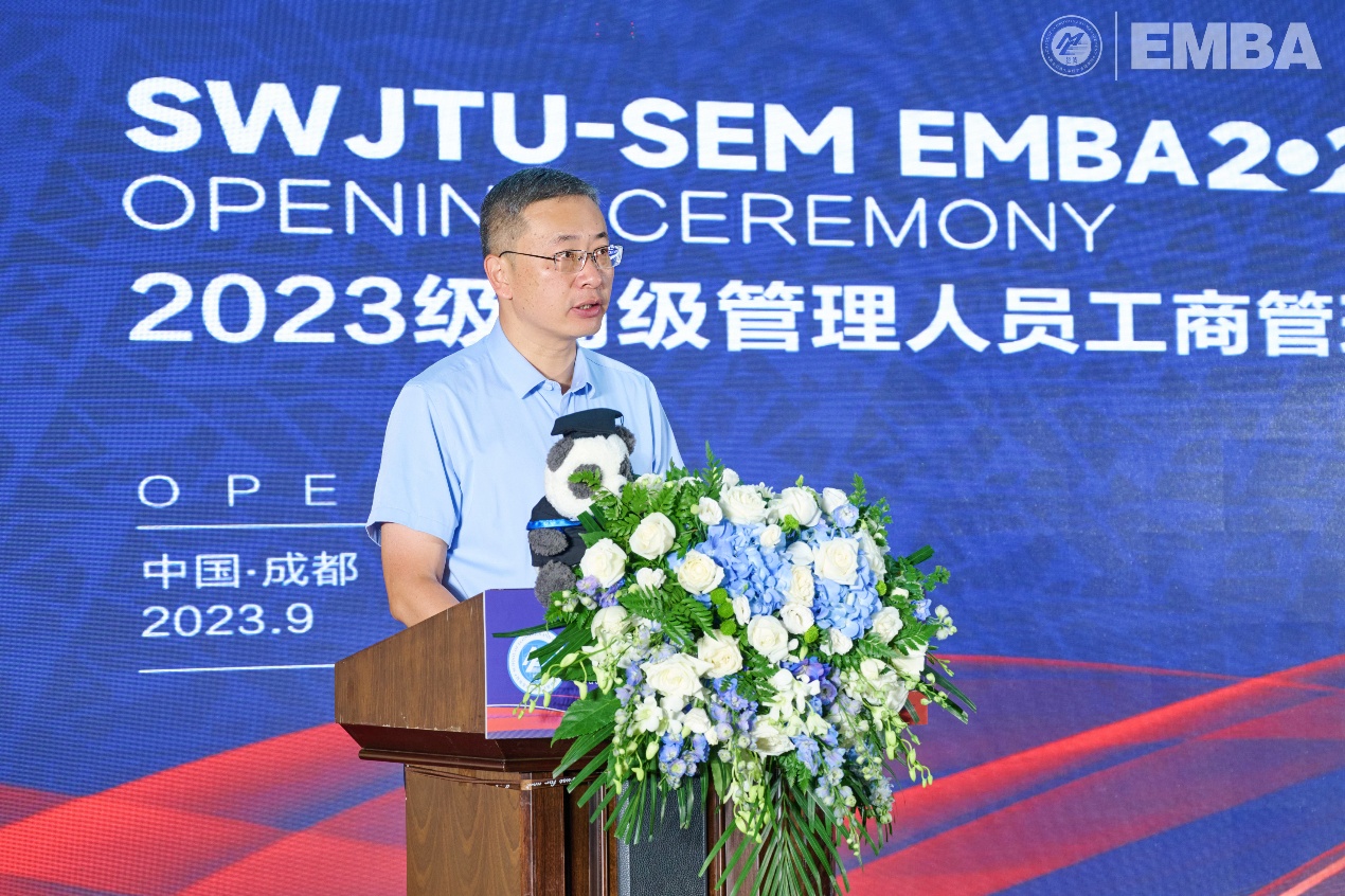 随后,刘长军副校长致辞,他首先代表学校向新生表示热烈的欢迎和祝贺,向为EMBA教育事业做出贡献的各界人士表示衷心的感谢。他介绍了best365网页版登录官方网站的历史沿革、办学特色和发展成就,强调了EMBA教育在学校发展战略中的重要地位和作用。刘长军副校长告诫大家要有创新思维,要有长远的眼光,培养交通天下的广阔胸襟,解决时代带来的挑战。他希望新生依托学院的人才培养体系,成为跨领域、跨行业的精英,扬帆起航!