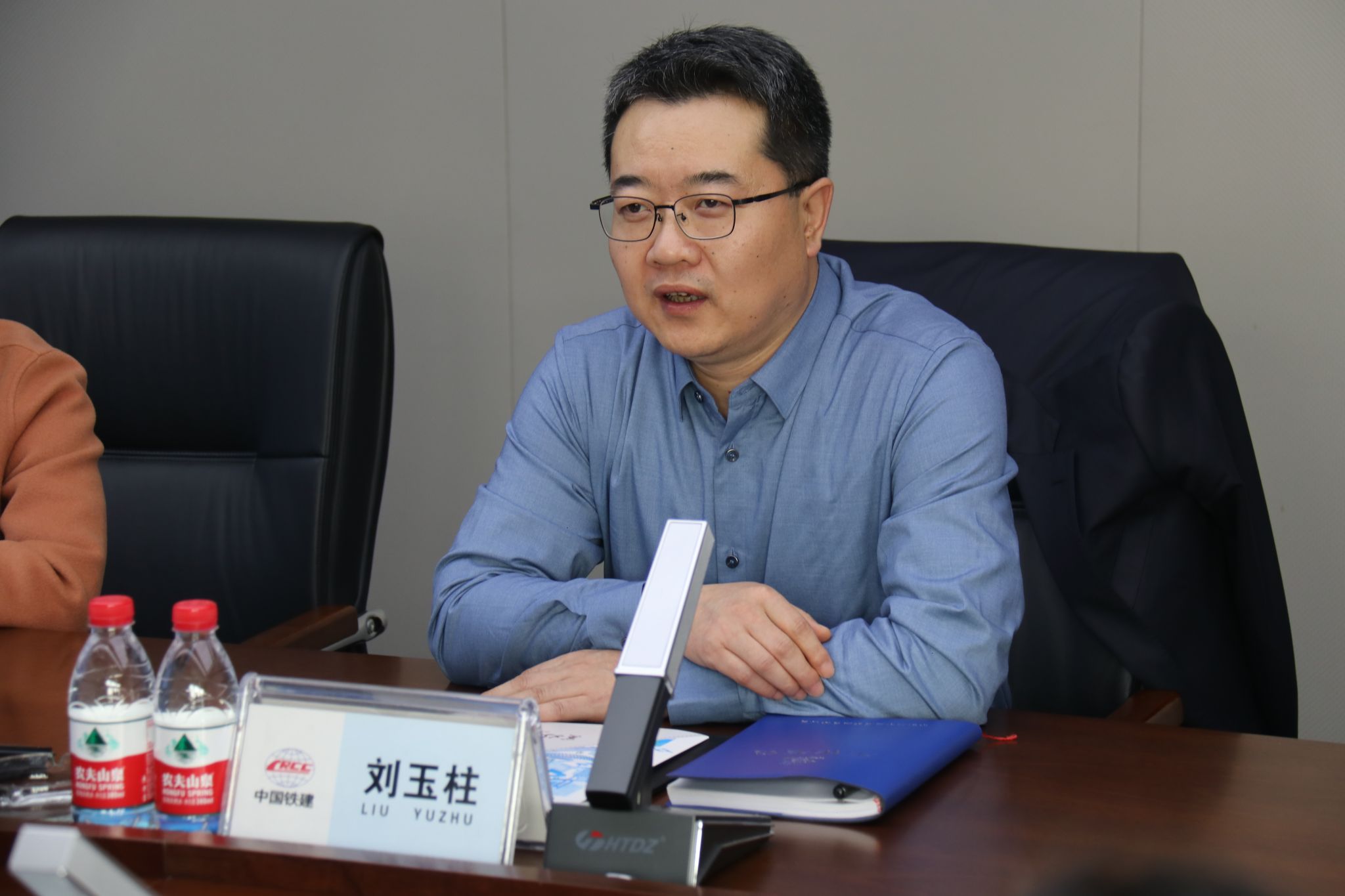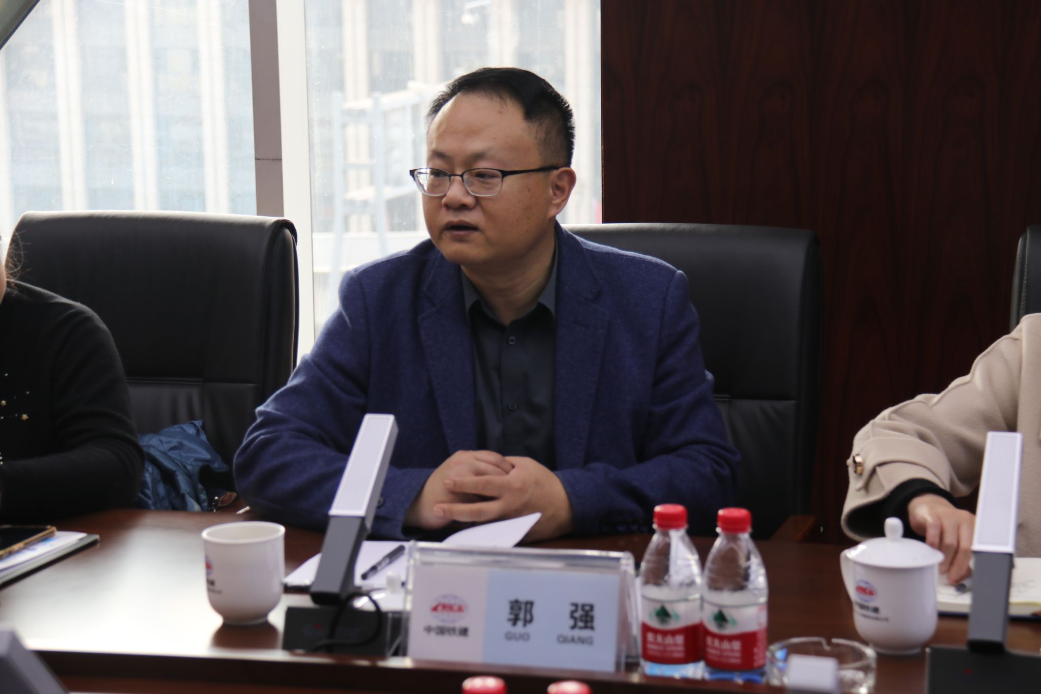 与会双方于中铁二十三局集团总部7楼会议室进行了座谈交流。中铁二十三局集团人力资源部经理、党委干部部部长刘玉柱向郭强一行表示热烈欢迎,他表示,交大是中铁二十三局的老朋友,希望这次交流能使校企合作进一步深化,而后就中铁二十三局的企业发展动态、人才需求情况、对毕业生的素质要求做详细说明。