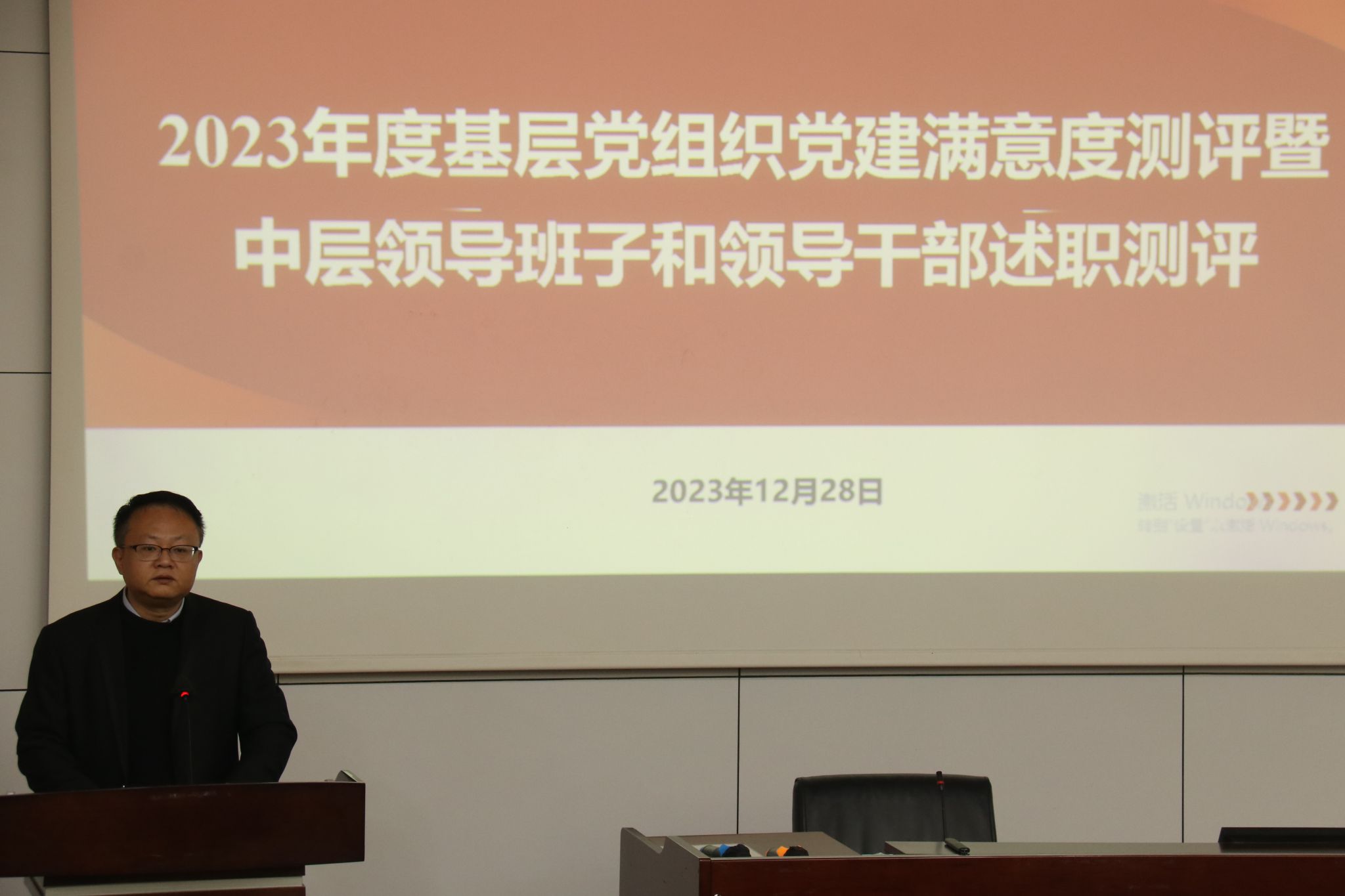 按照学校党委工作部署,2023年12月28日下午16:00,best365网页版登录官方网站2023年度党建满意度测评暨中层领导班子和领导干部述职测评大会在九里校区0215教室召开。学院党政领导班子全体成员,学院教职工和学生党员代表参加测评,会议由学院党委书记郭强主持。