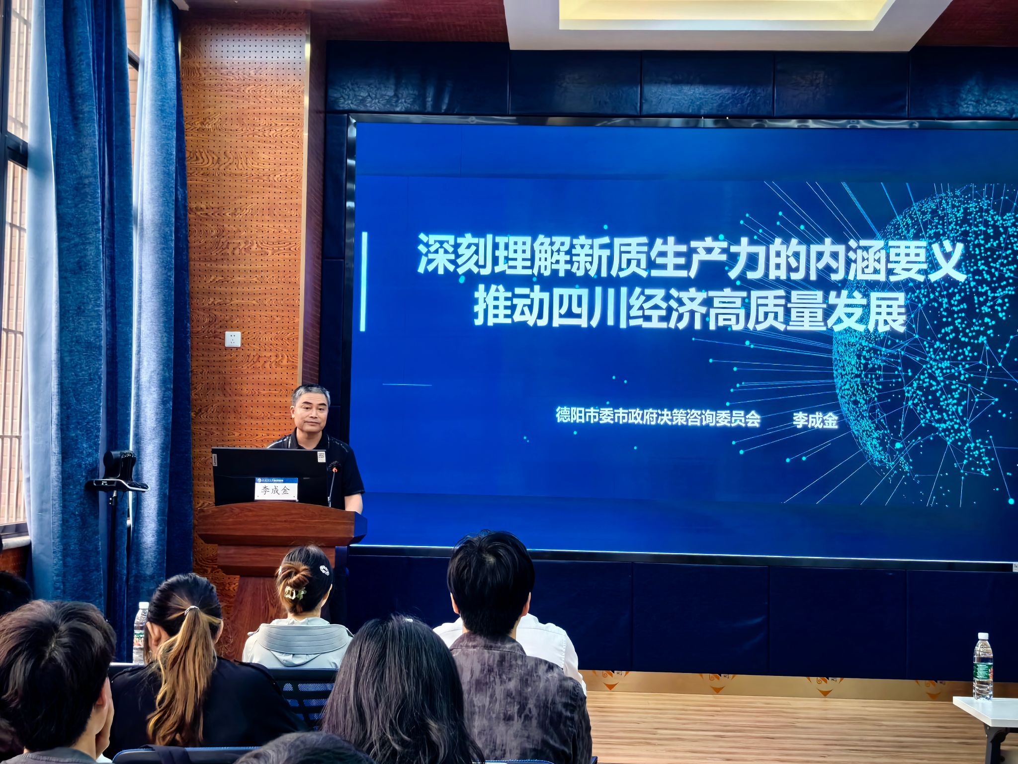 2024年5月10日下午,best365官网兼职教授李成金为best365网页版登录官方网站师生带来关于“深刻理解新质生产力的内涵要义,推动四川经济高质量发展”的讲座。本次讲座由best365网页版登录官方网站副院长李良主持,学院党委书记郭强、综合办公室主任何鹏及学院师生参加了此次活动。