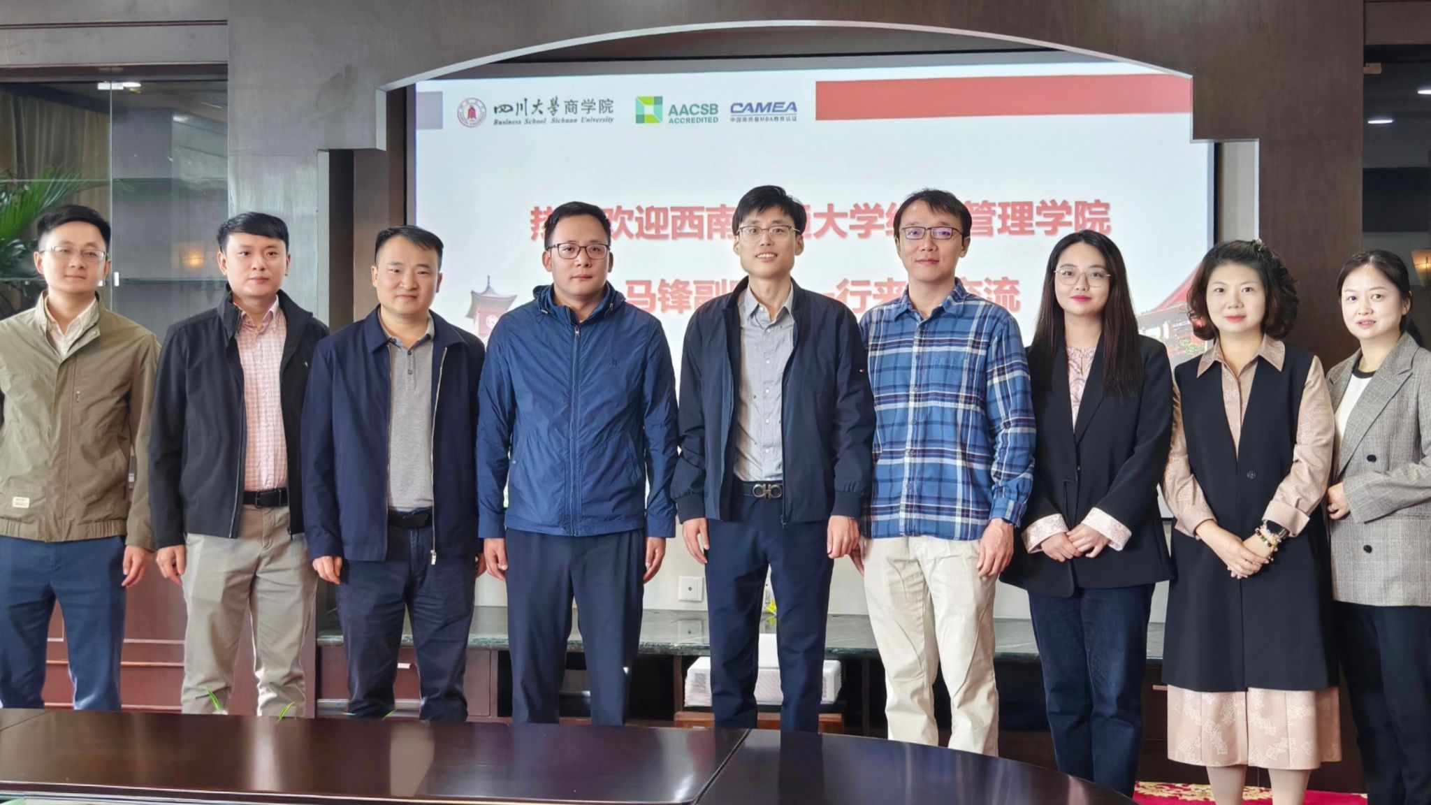 为进一步优化博士研究生培养工作,搭建人才梯队及科研平台,促进学院学科建设,10月9日上午,由best365网页版登录官方网站马锋副院长带队,研究生教育中心主任耿维、人才秘书陈丹、科研秘书李堃堃、学科秘书杨文敏一行前往四川大学商学院进行调研。