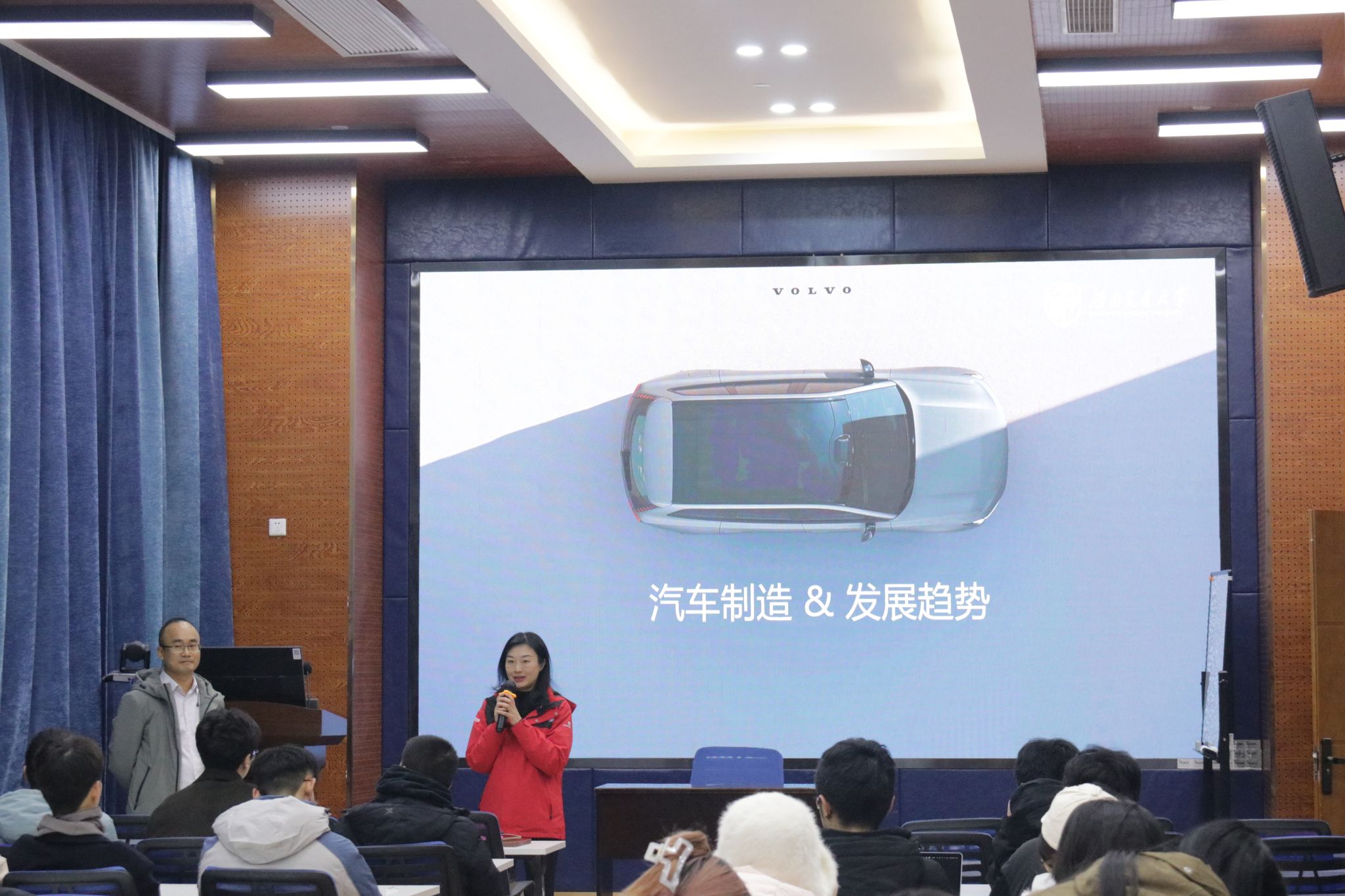 讲座内容涵盖沃尔沃公司简介、生产计划与物流、汽车制造工艺和汽车技术发展方向等多个方面,为参会学生提供了全面的行业知识更新和技术交流机会。