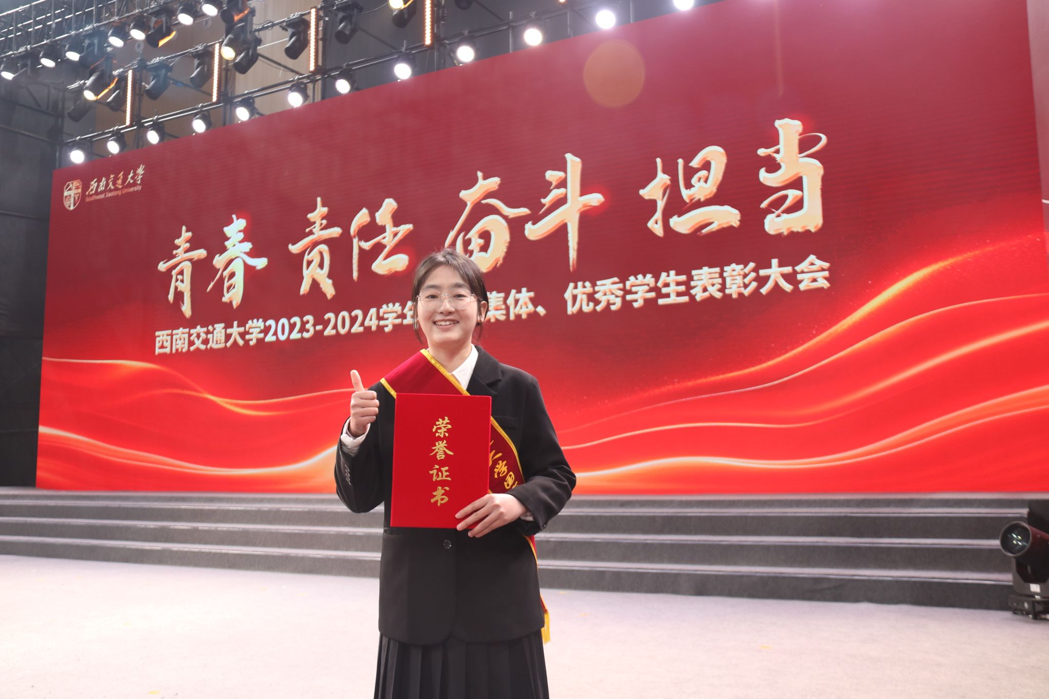 2021级本科生黄雅洁作为国家奖学金获奖代表接受表彰。刻苦是他们身上凸显出的力量,优秀是他们身上折射的符号,他们用热情,书写青春奋斗的诗篇,用榜样精神引领交大学子接续奋斗,展现了best365网页版登录官方网站学子昂扬向上的拼搏姿态。