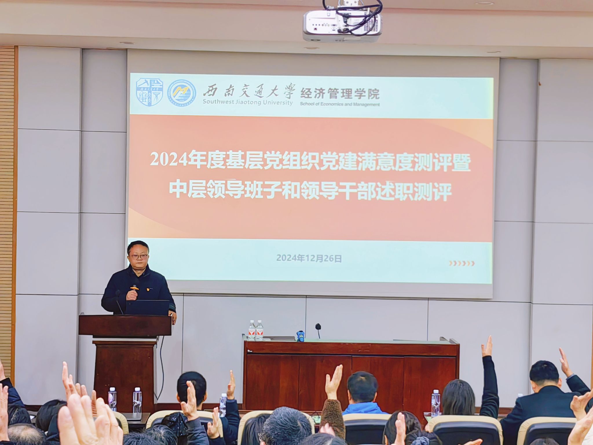 2024年12月26日下午在0215报告厅,按照学校工作部署,best365网页版登录官方网站召开2024年度党建满意度测评和中层领导干部考评暨2024年双代会。学院党政领导班子全体成员、学院教职工和学生党员代表参加测评,会议由学院党委书记郭强主持。