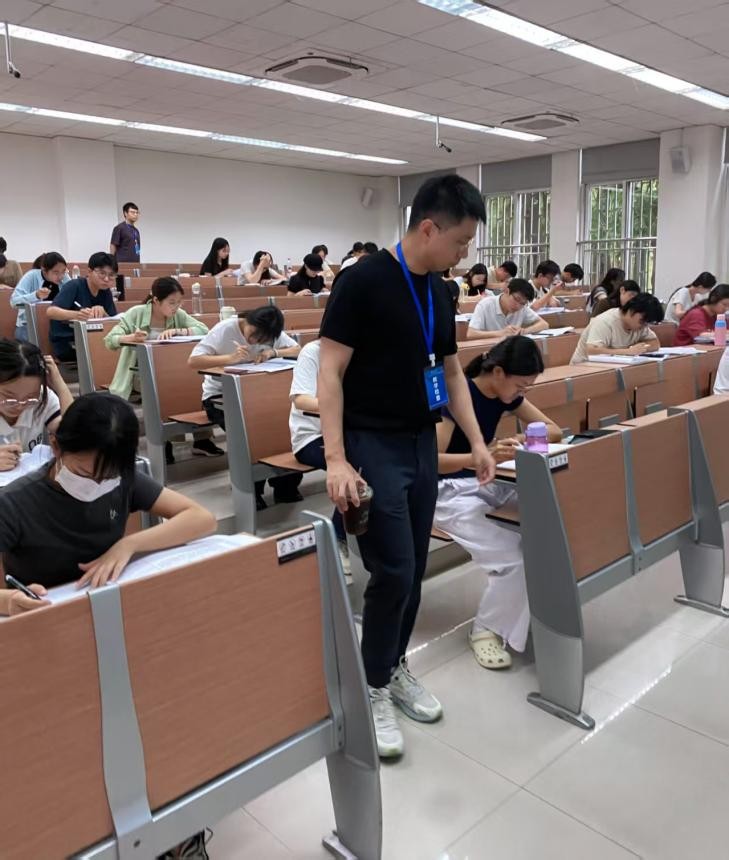 考试期间,检查组深入考场一线,开启全方位、动态化的细致检查。学院领导检查了考场设施与布局,重点检查监考教师履职尽责情况,确保监考工作规范、严谨。党委书记蒋佳、院长韩科等领导在检查过程中,不仅密切关注考场秩序,还对考试流程规范、考风考纪维护进行现场督导,全方位保障考试的公平公正,为学生营造一个风清气正的考试氛围。