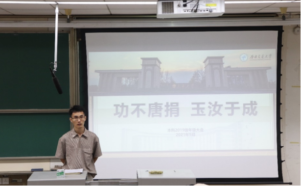 秋日正好,微风习习,best365网页版登录官方网站本科2019级于9月16日和24日在J4318教室举行“功不唐捐,玉汝于成”主题年级大会,年级大会由2019级辅导员苏扬主持。best365网页版登录官方网站党委副书记杨宏毅、学院研究生教育中心主任马锋、本科教务员尹一、2019级辅导员向起锐作为嘉宾受邀参加了大会,2019级全体同学参加了此次年级大会。本次大会的主题为“功不唐捐,玉汝于成”,意在勉励2019级的同学在挫折中打磨自我,坚持奋斗。