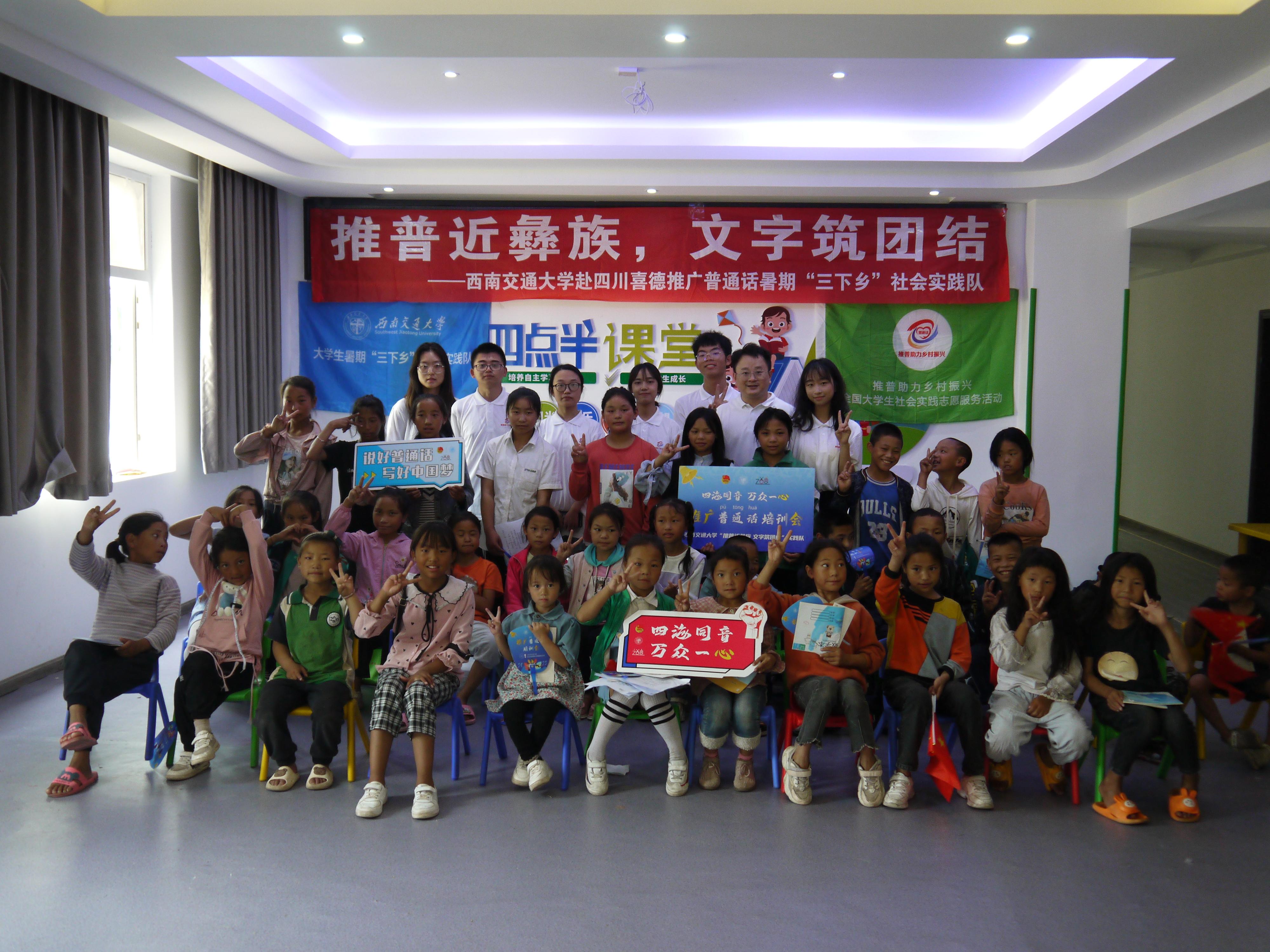为落实《国家通用语言文字普及提升工程和推普助力乡村振兴计划实施方案》,响应教育部语言文字应用管理司、共青团中央青年发展部共同开展的“推普助力乡村振兴”全国大学生暑期社会实践志愿服务活动的通知,进一步推进西部少数民族地区语言文字教育,铸牢中华民族共同体意识,助力乡村振兴。7月15日至7月19日,best365网页版登录官方网站“推普助力乡村振兴”实践团队一行深入四川省凉山自治州彝族聚居区的喜德县开展推广普通话志愿服务活动。