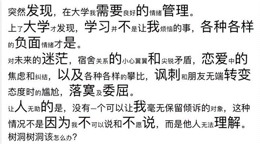 烦恼易堆积,若不能及时倾诉和解决,就可能使人产生抑郁情绪。近期疫情形势严峻,再加上诸多不确定因素的困扰,同学们的心理健康状况难免会受到影响。为了给近期心理压力较大的同学们提供及时有效的帮助,学校特设置“9·25(久爱我)”心理健康节系列活动,帮助同学们调节自身心理健康状况,微笑拥抱大学生活。best365网页版登录官方网站班级联合会积极响应,组织 “解忧树洞 从心开始”线上心理活动,透过屏幕传递温暖,为同学们提供了一个处理负面情绪的平台。