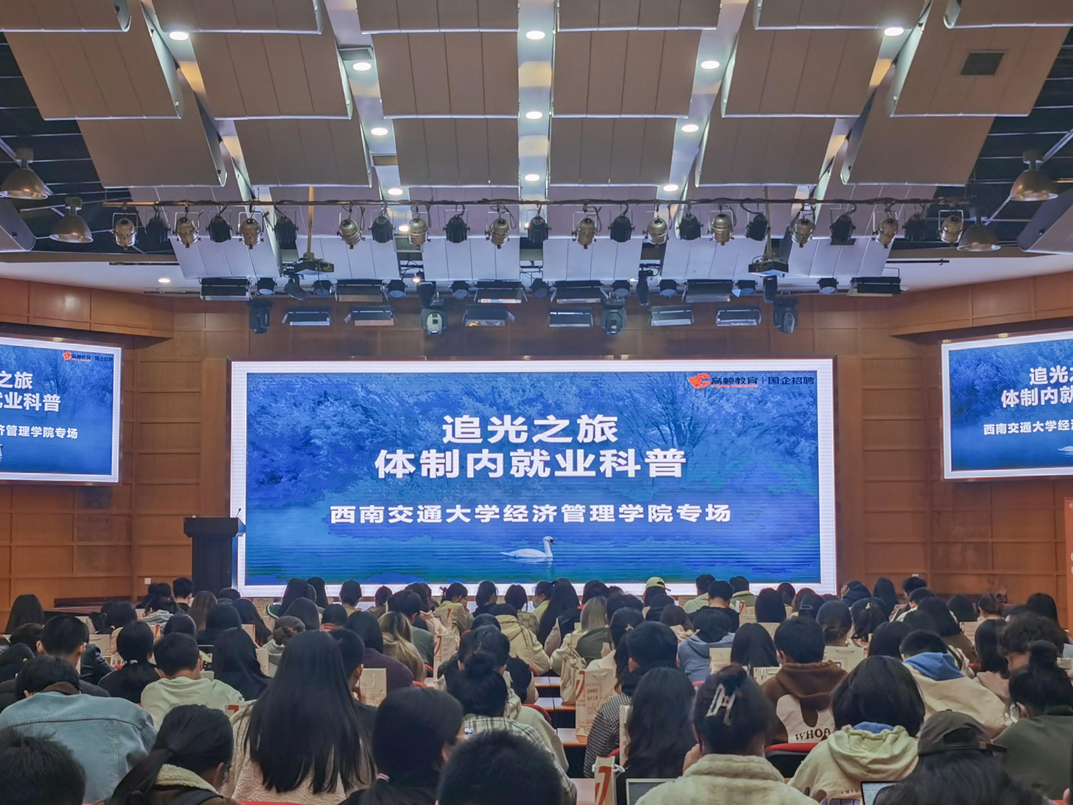 2023年3月21日,best365网页版登录官方网站在九里校区国际会议厅开展了体制内就业科普讲座。本次讲座邀请了高顿教育的樊磊老师作为讲师。樊磊老师讲解了国有六大行、三大政策行、石油、烟草、三大运营商等国有企业的招聘时间、具体招聘要求及招聘流程,帮助同学们破除信息差。同时他呼吁同学们自信展示自身优势,增强竞争力。