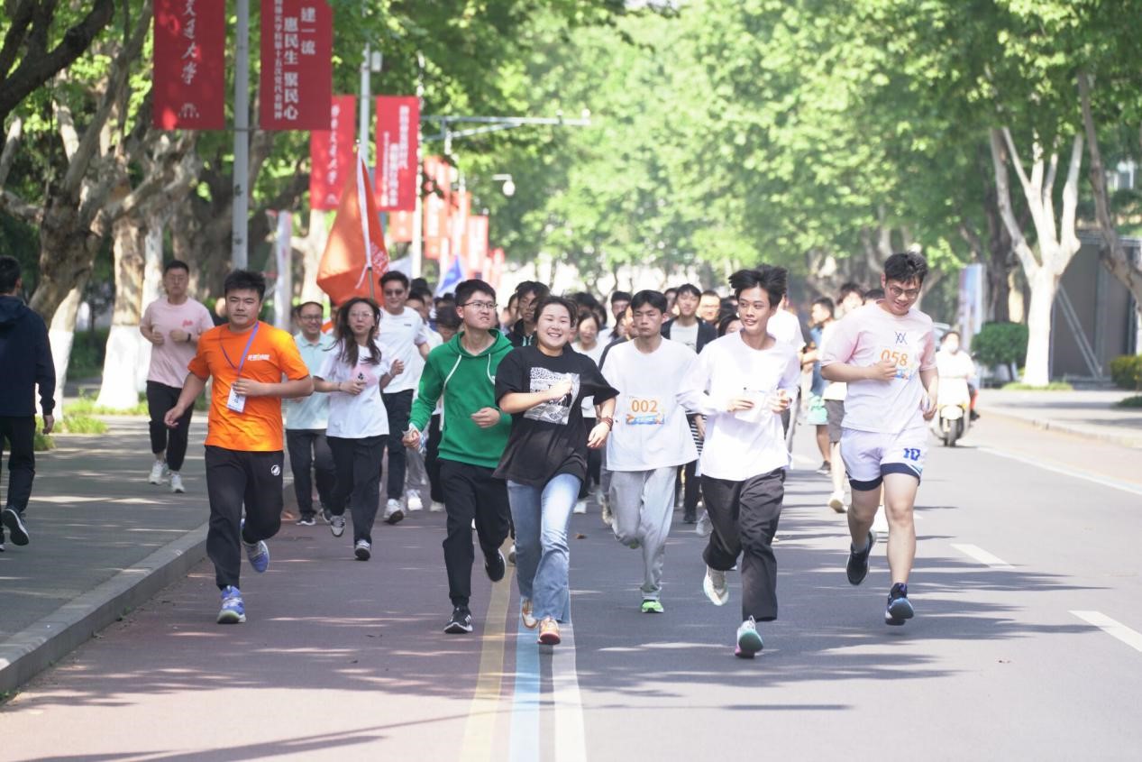 接下来,为防止运动过程中出现抽筋等情况,主持人带领同学们进行了热身活动。热身结束后,嘉宾老师们与同学们一起绕既定路线跑完全程。大家在跑步过程中充满活力,步伐稳定,一路跑去,感受微风拂过,观赏优美的校园环境。