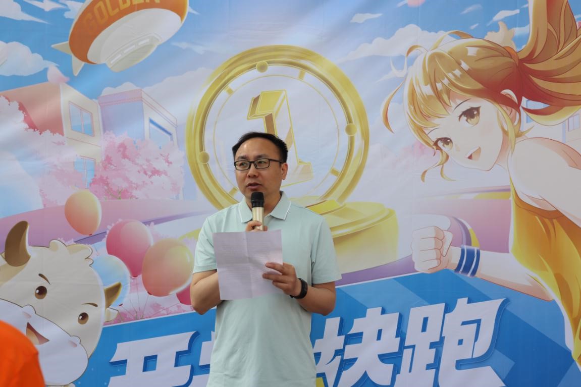 随后,best365网页版登录官方网站党委副书记杨宏毅老师进行致辞。他指出健康对于我们每个人来说都是至关重要的,健康更是我们快乐学习、辛勤工作、享受生活的基础和源泉。在学校落实“五育并举”的人才培养中,在同学们自由全面发展的过程中,体育不可或缺。同学们可以多走出寝室、走向操场,融入校园体育文化活动,多参与、多接触、多感知、多收获。感悟运动、重视健康将是我们今天很重要的一个收获。致辞的最后,杨老师指出,本次“开学1块跑”的校园活动,亦希望同学们继续发扬乐观自信、坚持梦想的精神,把公益和责任相互传递,为梦想前行而努力。