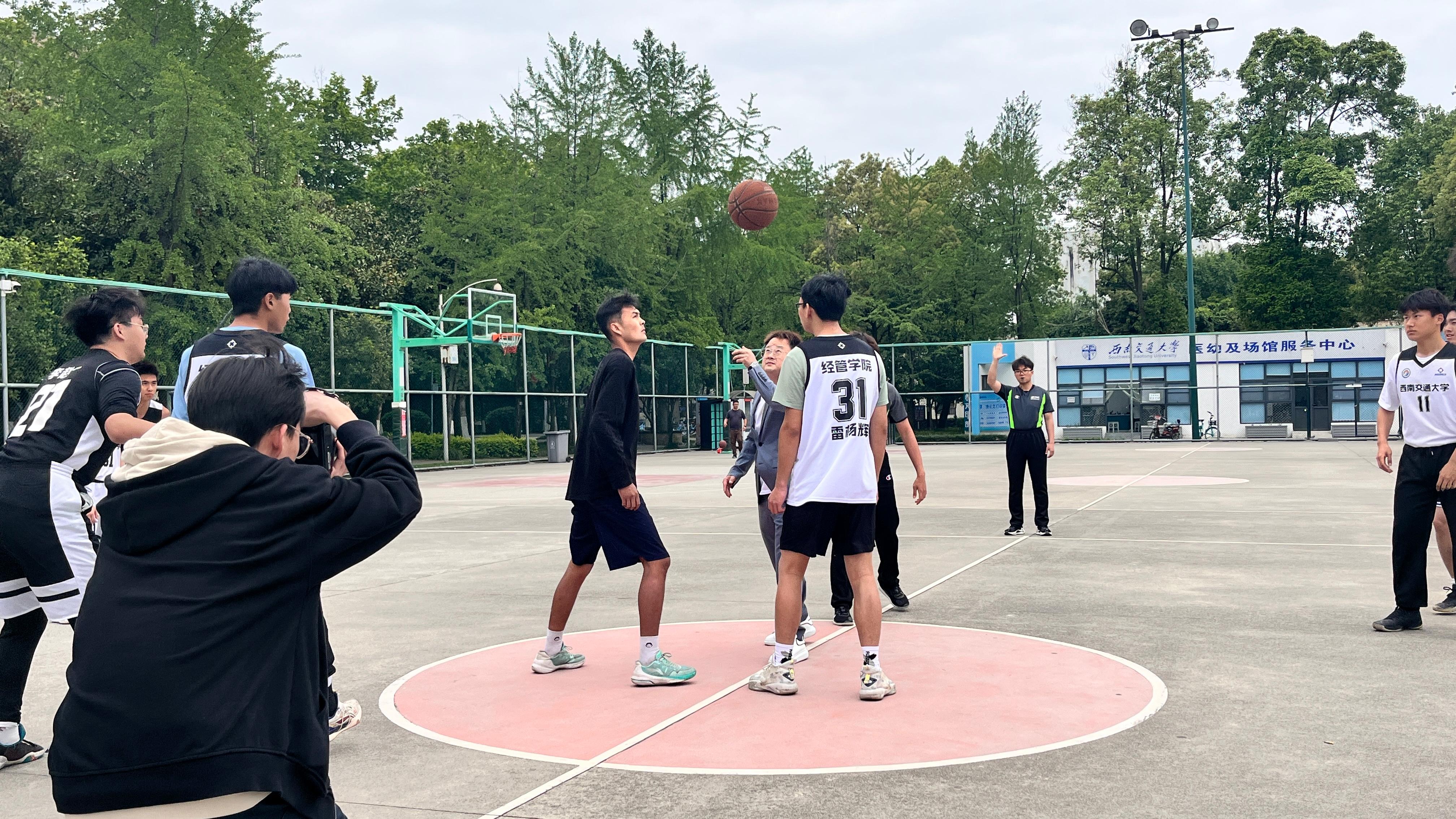 2023年4月24日中午,best365网页版登录官方网站2023年“经管杯”篮球赛开幕式暨揭幕战在九里校区篮球场举行。best365网页版登录官方网站党委副书记杨宏毅老师,分团委副书记、青年志愿者协会指导老师、2020级辅导员陈建奇老师,计财处助理团指导老师、2021级辅导员莫代玉老师,青年建设中心指导老师、2019级辅导员安静泽老师,研究生辅导员卢婧茹老师,研究生辅导员任永昌老师出席了本次开幕式。