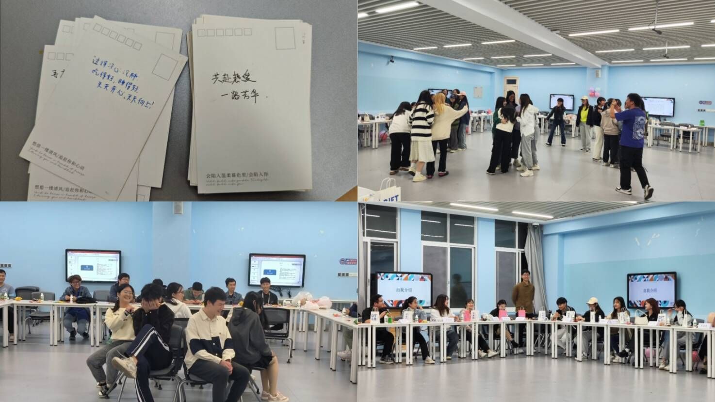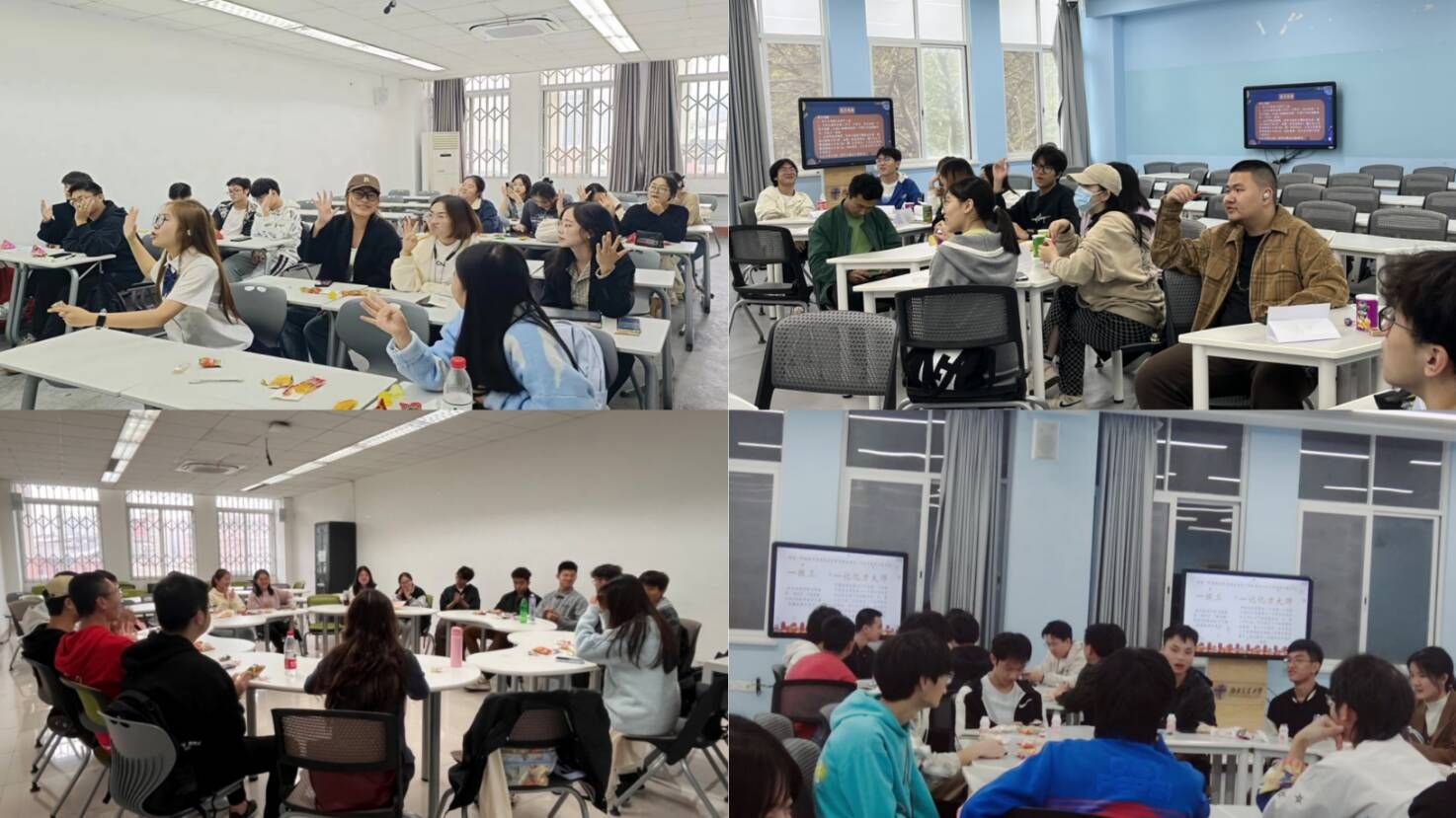 在辅导员老师的指导下,各班班委精心策划,各班精心布置了班会会场并组织开展了丰富多彩的破冰游戏,有考验反应能力的“数七”、“击鼓传花”,有竞争激烈的 “猜歌名”、“数字炸弹”,也有促进同学之间互相交流的“一元五角”、“害你在心口难开”,还有精彩纷呈的“听歌识曲”。多样的互动游戏给同学们带来了无限欢乐,帮助同学们在游戏过程中建立友谊、增进感情,让每一位同学都进一步融入到班级当中,使得班级氛围更加融洽。