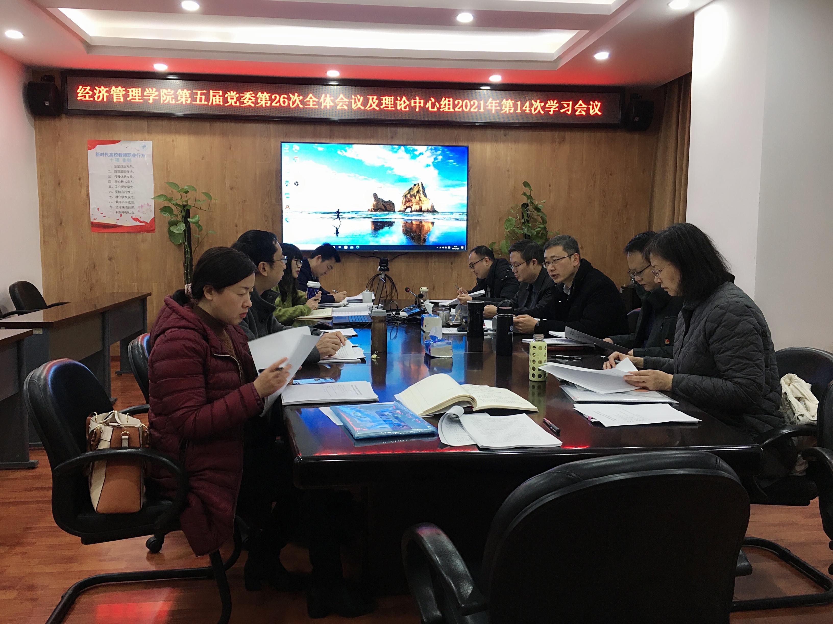 2021年12月8日上午8:30,best365网页版登录官方网站第五届党委在九里校区零号楼0607会议室召开了第26次全体会议,并进行了2021年第14次理论学习中心组学习。会议和学习由学院党委书记王斌主持,学校党委组织部陈燕灵老师列席了会议。