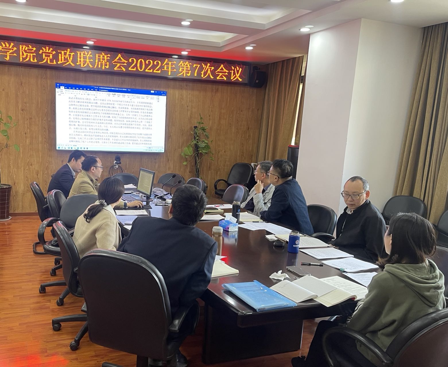 学院2022年第7次党政联席会议于4月20日上午11:00召开。会议按照议题分别由学院党委书记王斌、执行院长郭强主持。