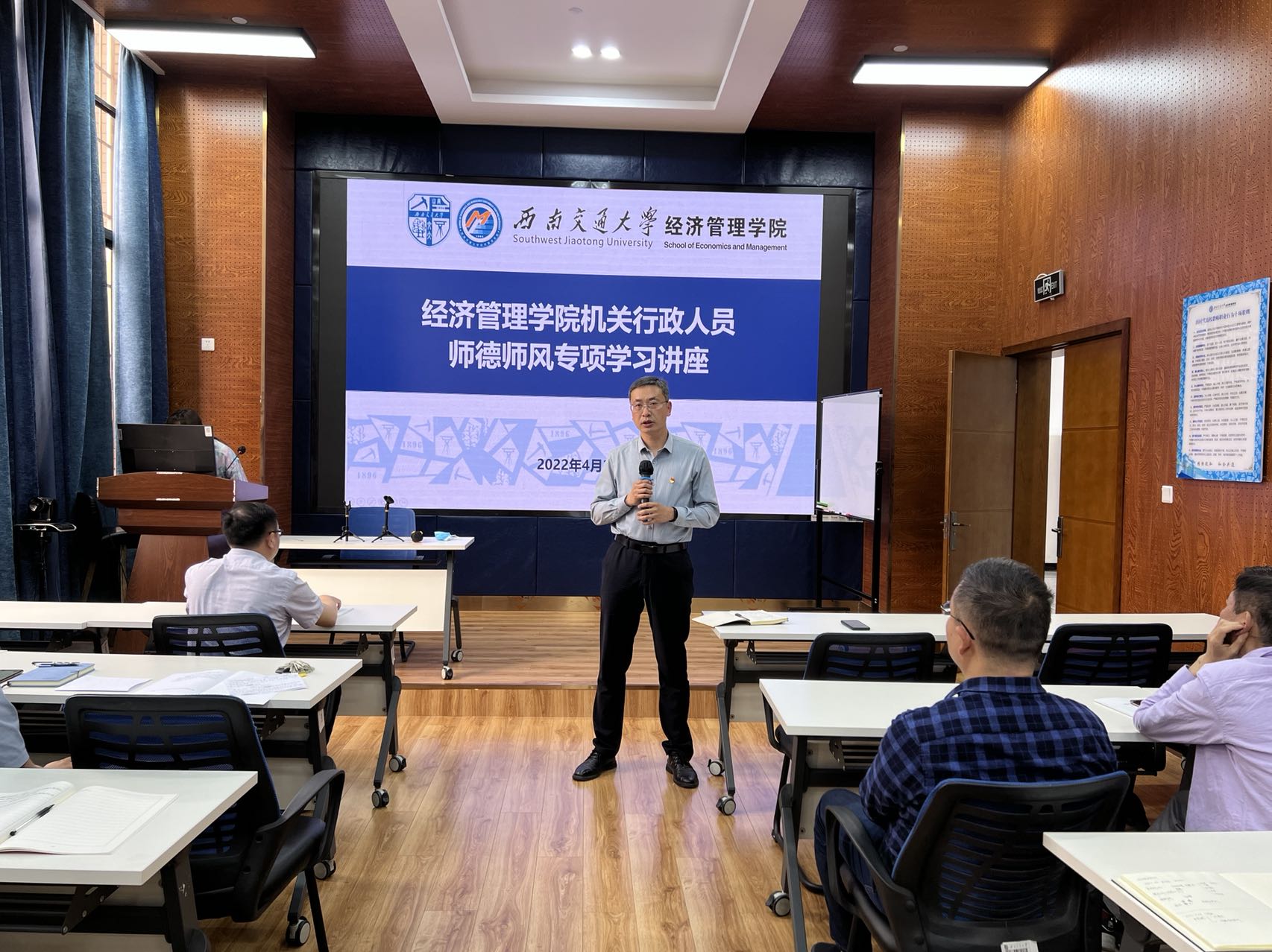为深入学习贯彻习近平新时代中国特色社会主义思想和党的十九大精神,深入贯彻落实全国教育大会精神,扎实推进《中共中央 国务院关于全面深化新时代教师队伍建设改革的意见》的实施,按照学校《关于开展best365网页版登录官方网站师德师风建设应知应会专项学习的通知》要求,2022年4月28日下午4点,学院机关第一和第二党支部在九里校区0218会议室组织管理岗工作人员集中开展了师德师风建设专项学习教育。