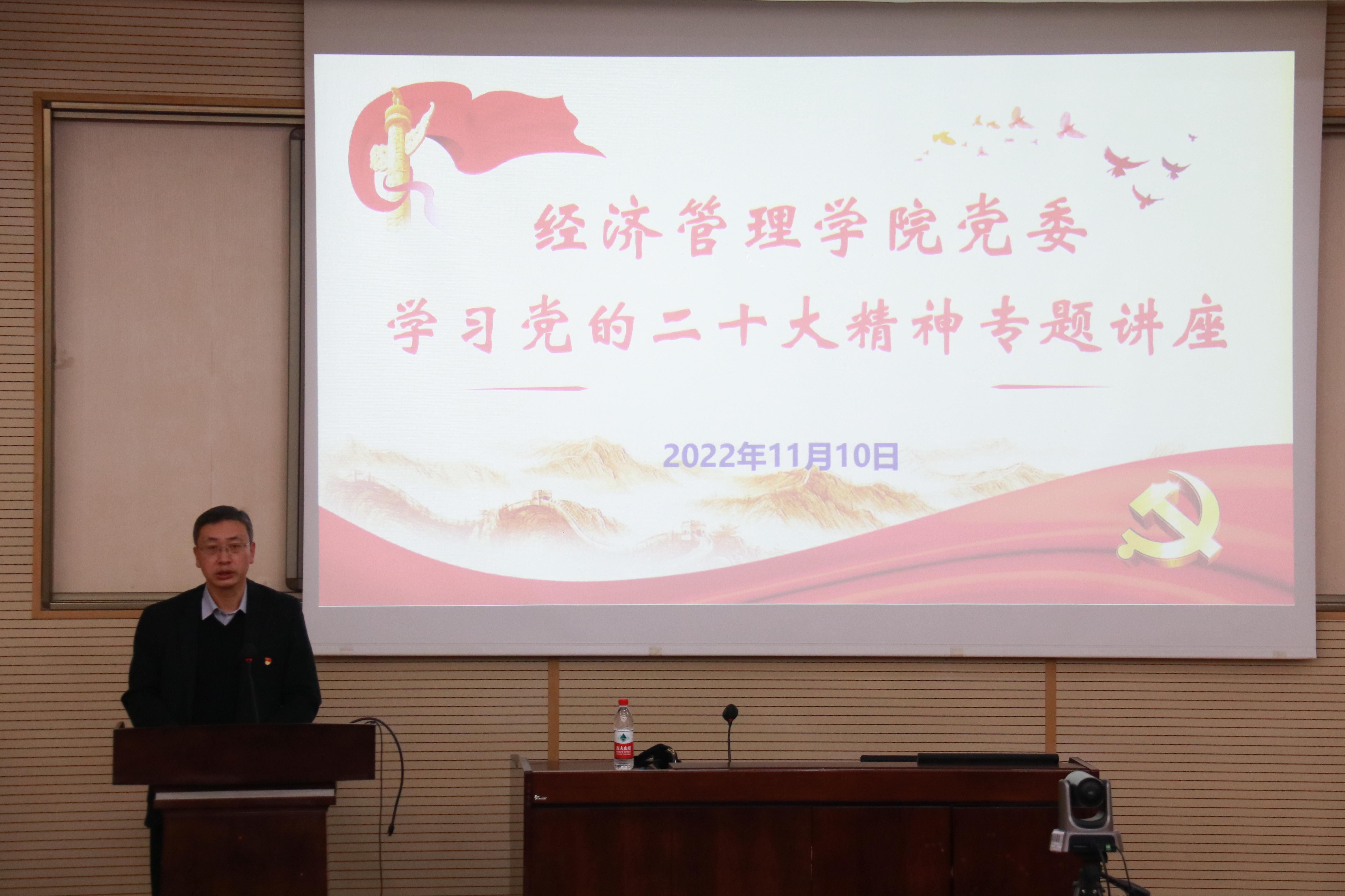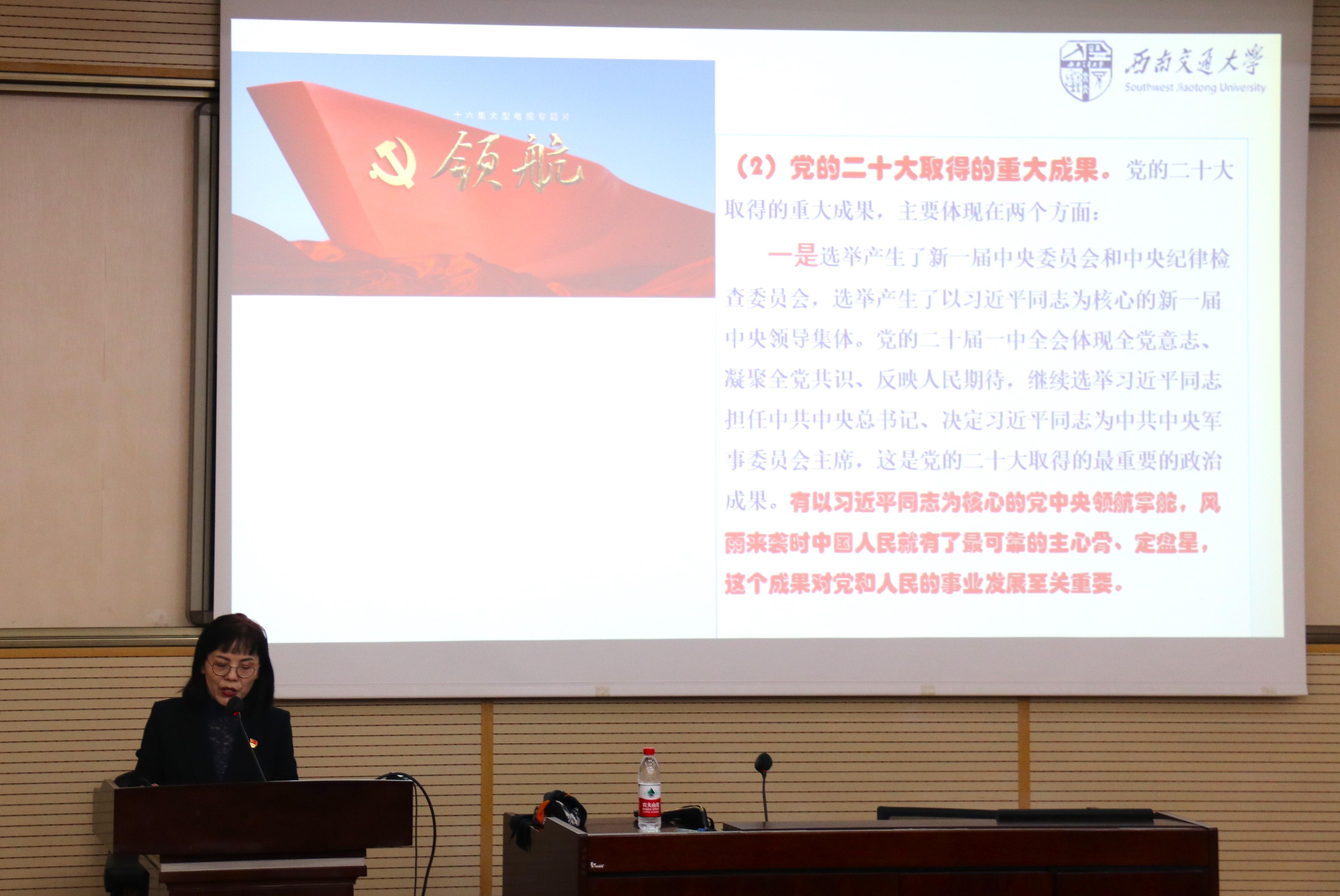 为深入学习贯彻党的二十大精神,best365网页版登录官方网站党委特邀四川省委宣讲团专家库成员、best365网页版登录官方网站马克思主义学院教授何薇老师于11月10日下午在九里校区0202教室作题为《学报告悟思想开新局——深入学习领会党的二十大精神 坚定不移推进全面从严治党》的专题报告。讲座由学院党委书记王斌主持,学院党委委员、院领导、各师生党支部委员参加了此次专题讲座。