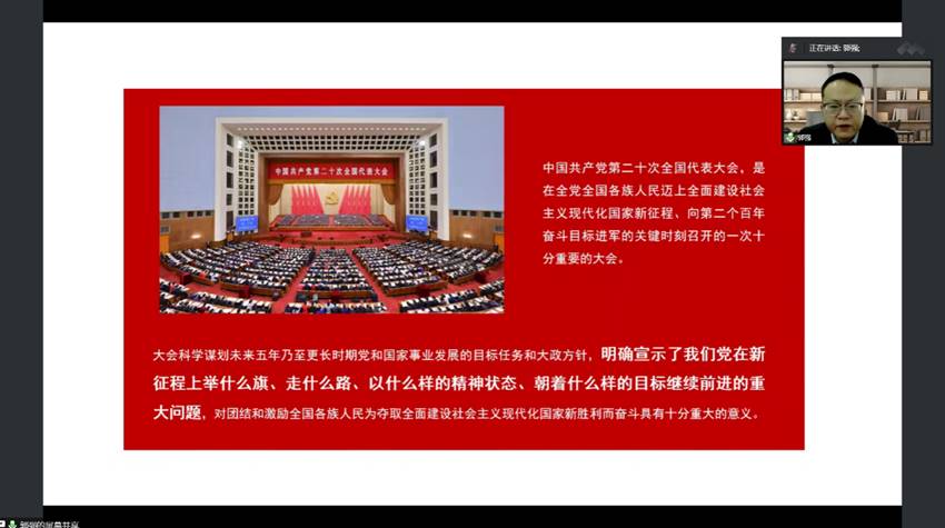 2023年1月18日下午,best365网页版登录官方网站党委委员郭强带领学院工程管理系党支部、本科第一党支部、硕士2021级第五党支部以及博士研究生第四党支部开展了以深入学习宣传贯彻党的二十大精神和学校第十五次党代会精神为主题的党课。